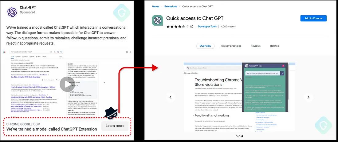 Umelá inteligencia naberá na sile a mnoho používateľov si chce vyskúšať čo všetko dokáže. Podvodníci na seba nenechali dlho čakať a zareagovali škodlivým rozšírením pre prehliadať Google Chrome a podobné prehliadače na tomto jadre. Ide o doplnok s názvom Quick access to Chat GPT, ktorý si používatelia mohli stiahnuť v obchode priamo s rozšíreniami na zabezpečenie rýchlejšieho prístupu k službe ChatGPT.