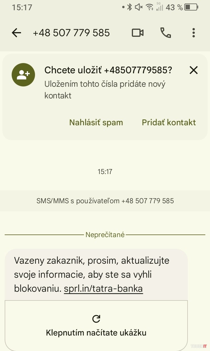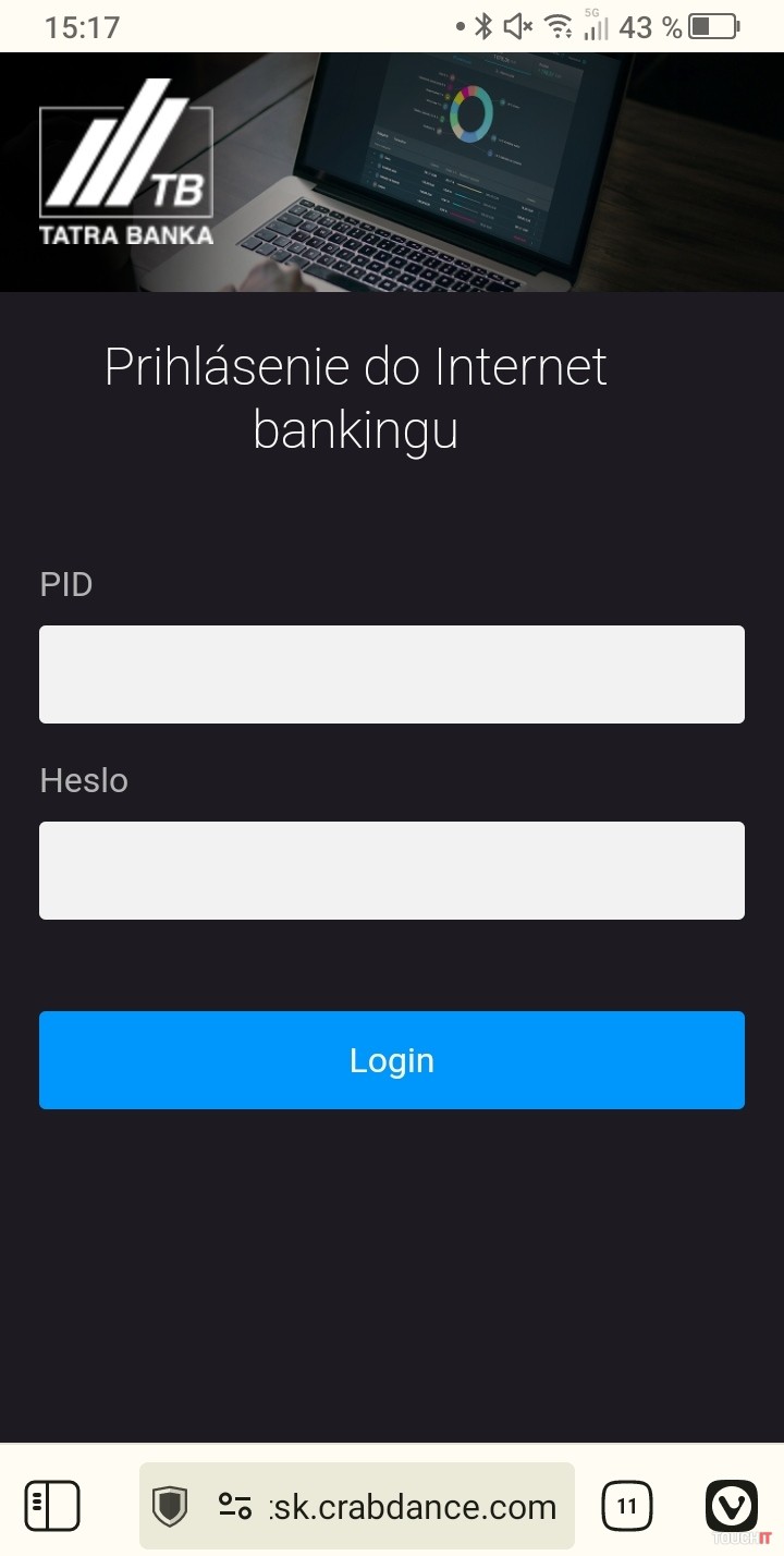 Výzvu sme obdržali prostredníctvom SMS správy, v ktorej bola internetová adresa. Tá využívala službu skrátenia internetovej adresy a teda zároveň maskovania pôvodnej lokality. Otvorením tohto linku sa zobrazila stránka, ktorá sa vizuálne podobala na prihlasovaciu stránku banky, avšak internetová adresa bola odlišná. Háčik je v tom, že aj táto internetová adresa má overenie pravosti. Oproti minulosti je tu jedna zmena.