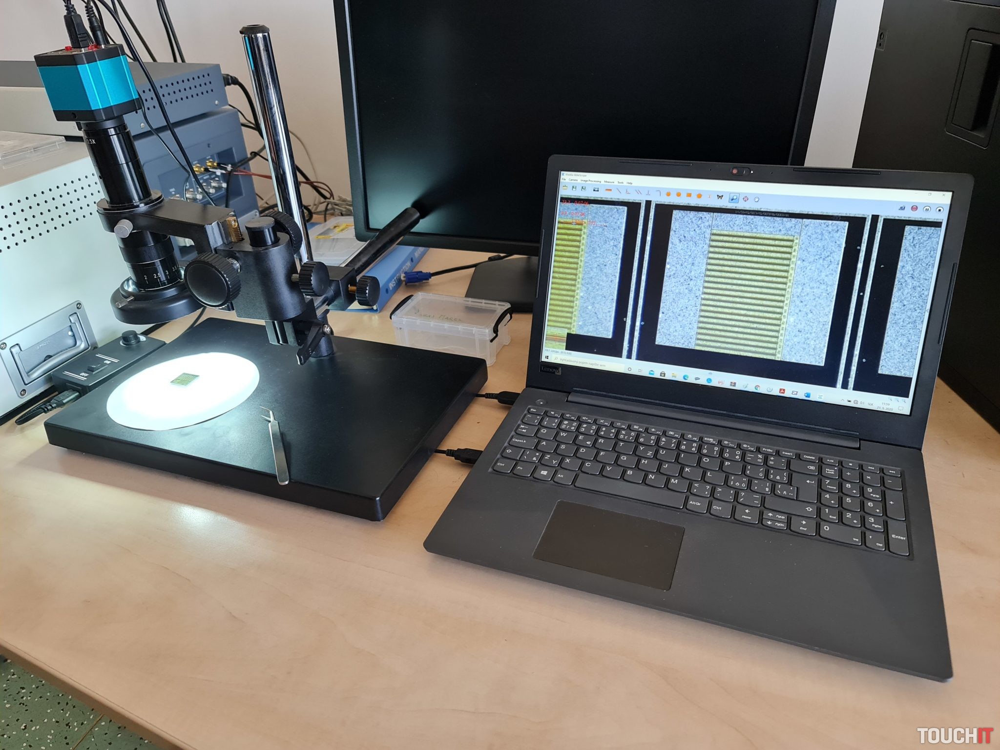 Ďalšou zástavkou bolo Diagnostické laboratóriumelektroniky pracujúce na projektoch H2020, ktoré slúži na diagnostiku moderných elektronických štruktúr od mikrometrových až po nanometrové rozmery. Hostia si prezreli meracie prístroje na komplexnú analýzu elektrických vlastností prvkov, napríklad špeciálnu kontaktovaciu stanicu, pomocou ktorej je možné merať elektrické parametre priamo na čipe. Hlavným zameraním tohto pracoviska je analyzovať tranzistorové štruktúry na báze širokopásmových polovodičov, hlavne materiálov na báze gálium nitridu (GaN) a karbidu kremíka SiC. Vďaka zapojeniu do projektov spoločného európskeho výskumného podniku ECSEL JU majú tunajší vedci prístup k najmodernejším elektronickým prvkom vyvíjaných v Európe. Výsledky ich projektov sú využívané v oblasti automotive pri aplikácii inteligentných sietí a senzorov.