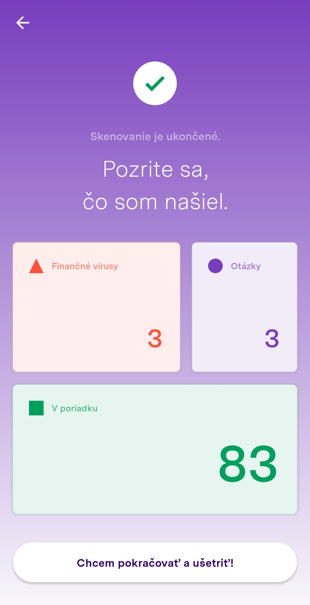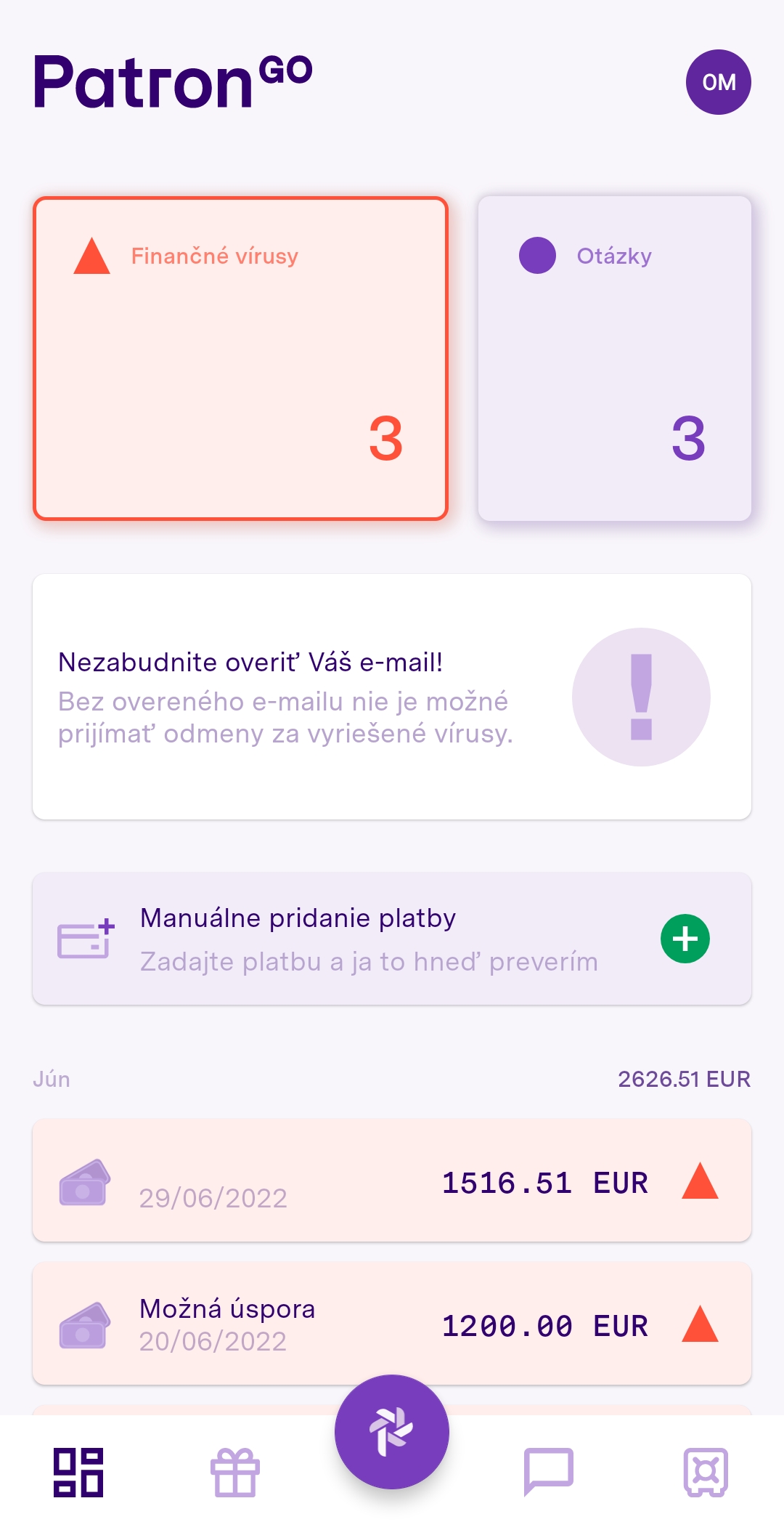 Práve preto sa pre Patron GO používa pojem finančný antivírus – on vyhľadá, doslova teda preskenuje vaše financie a nájde finančné vírusy. Tie vám pomôže vyliečiť.