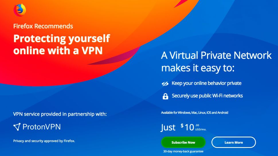 Mozilla oslovila vzorku používateľov prehliadača Firefox, aby sa zaregistrovali k odberu predplatného – VPN premium.