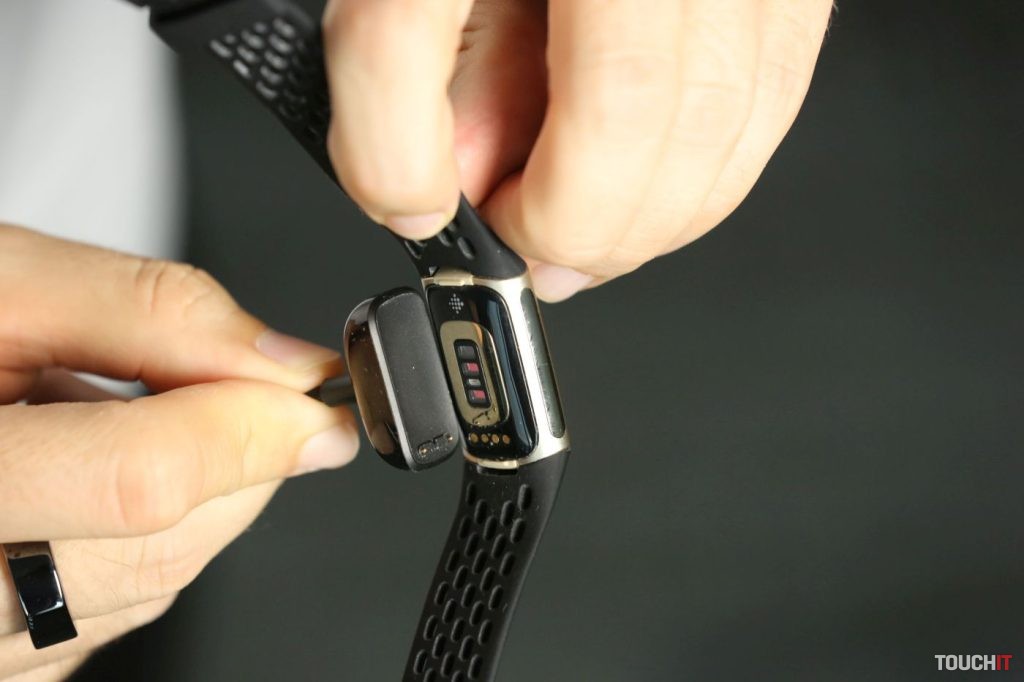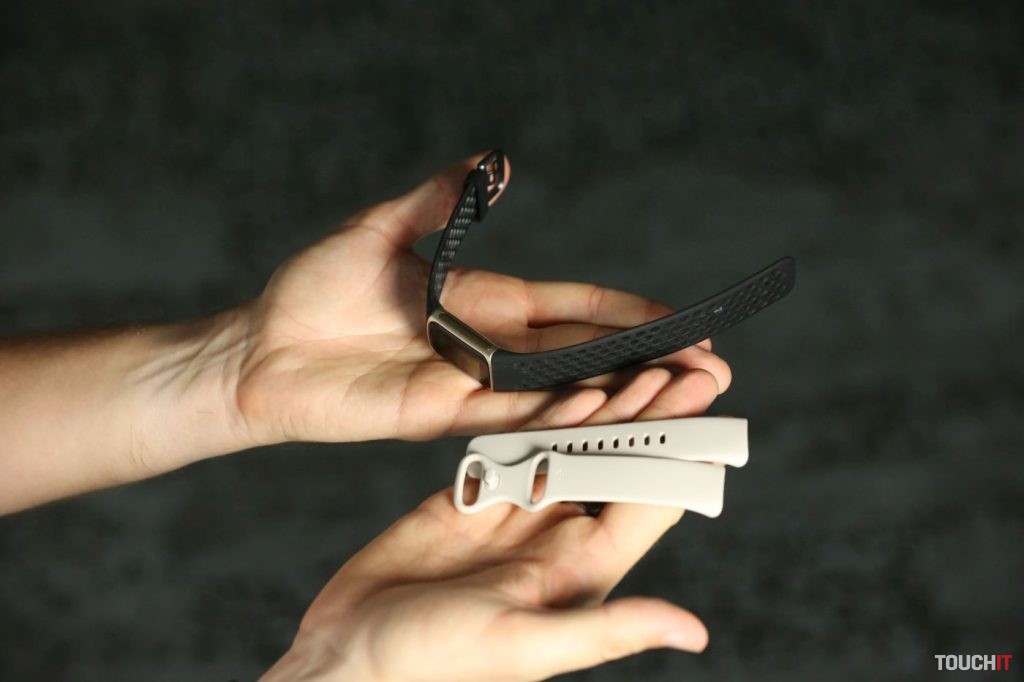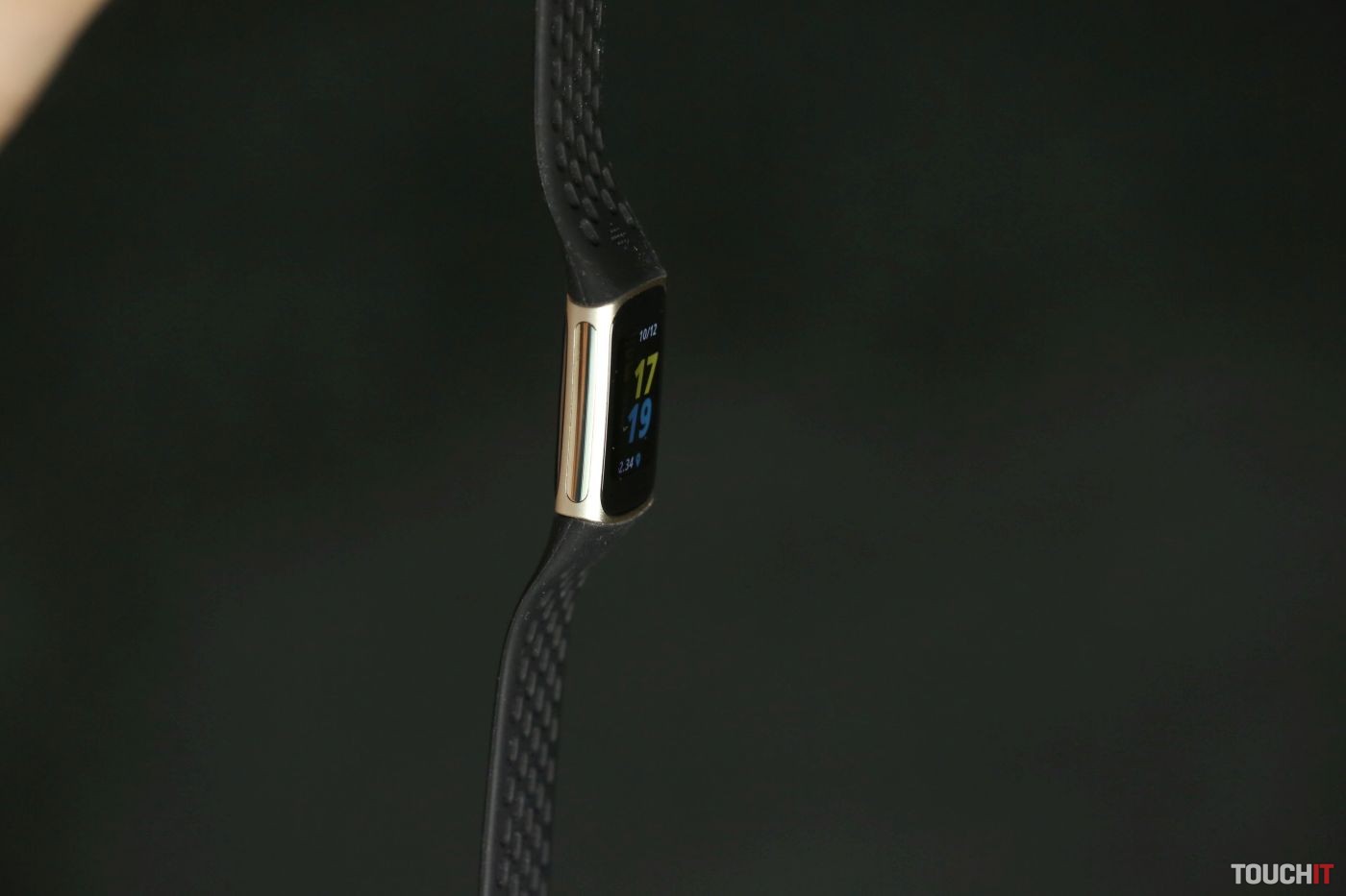 Charge 5 má kvalitnú a odolnú konštrukciu, ktorá je vyrobená z hliníka. Displej chráni ochranné sklo Gorilla Glass 3. Náramok je dostupný v troch farbách, osobne som testoval zlatú verziu. Vyzerá elegantne. Priložený remienok som nahradil čiernym športovým remienkom, ktorý je možné zakúpiť samostatne. Ten mi z hľadiska celodenného nosenia a najmä športovania ponúka znateľne lepšie pohodlie.