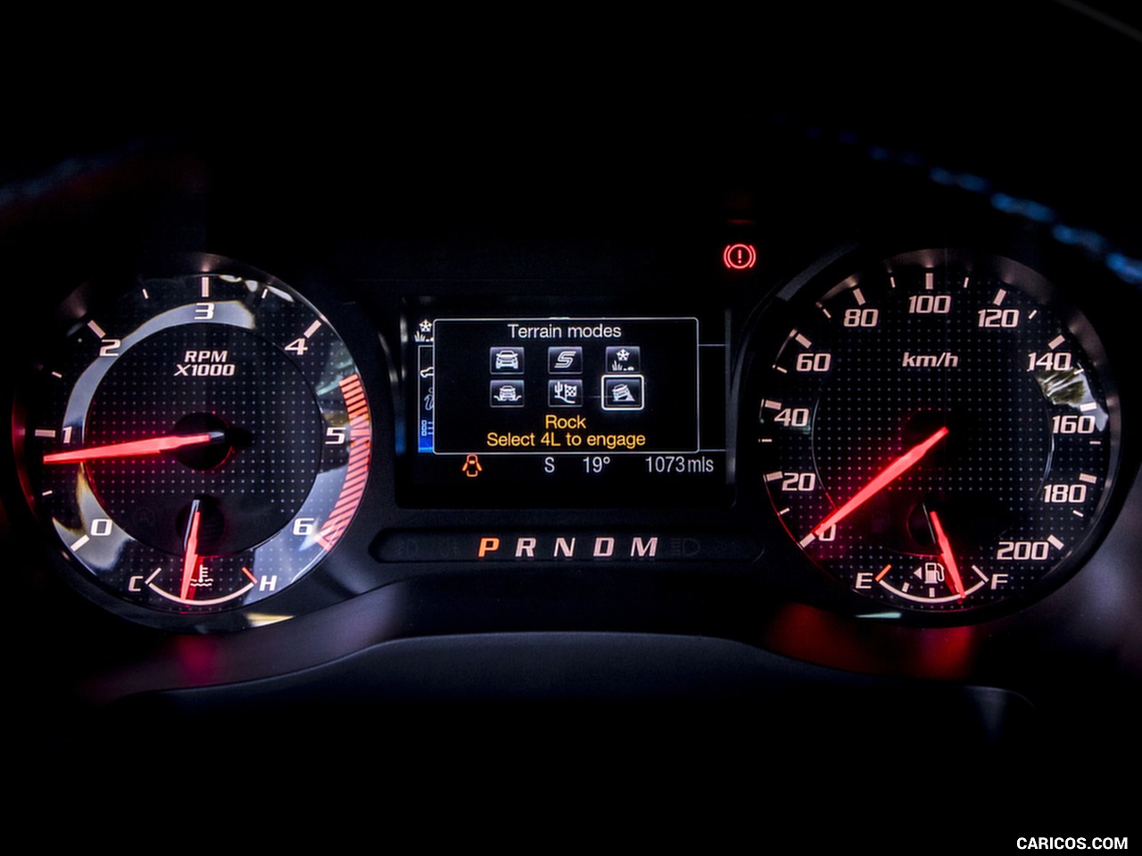 Volič pohonu zostal na tradičnom mieste a ponúka 3 možnosti: v základe je poháňaná zadná náprava 2H, ku ktorej môžete pridať predok v režime 4H a v horších podmienkach sa hodí redukovaný prevod 4L + uzávierka zadného diferenciálu. Kam sa vyberiete, tam prejdete, prekážky budú skôr vo vašej hlave a to ma na tomto aute neskutočne baví. Hovorí sa, že „Tatra nezná bratra“ no RAPTOR v tom prípade nepozná a nerešpektuje nikoho, proste ide vpred :).