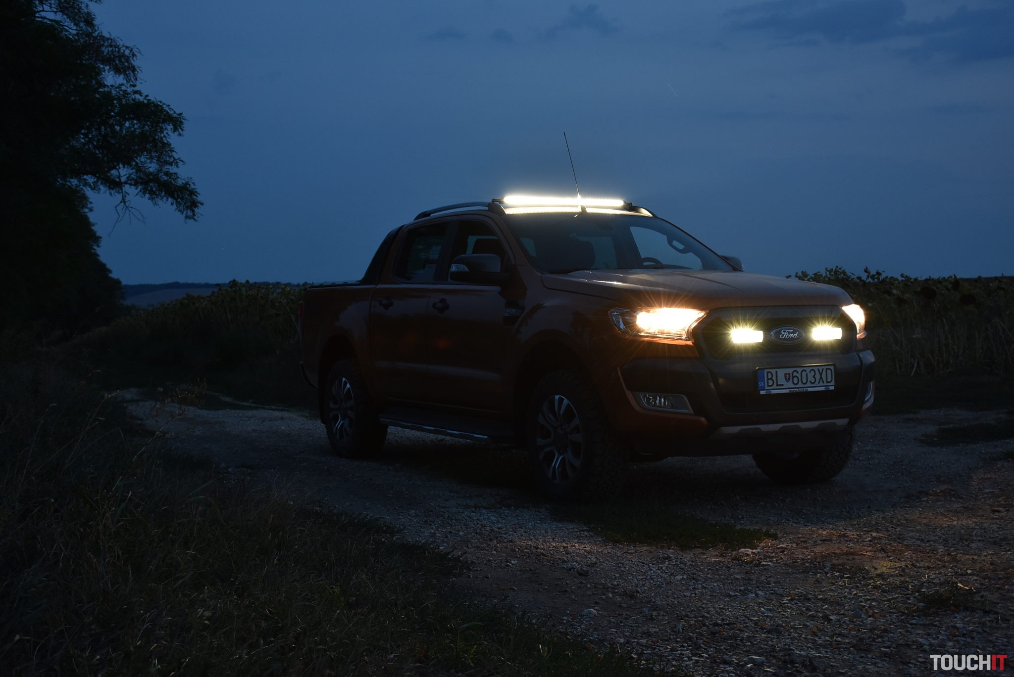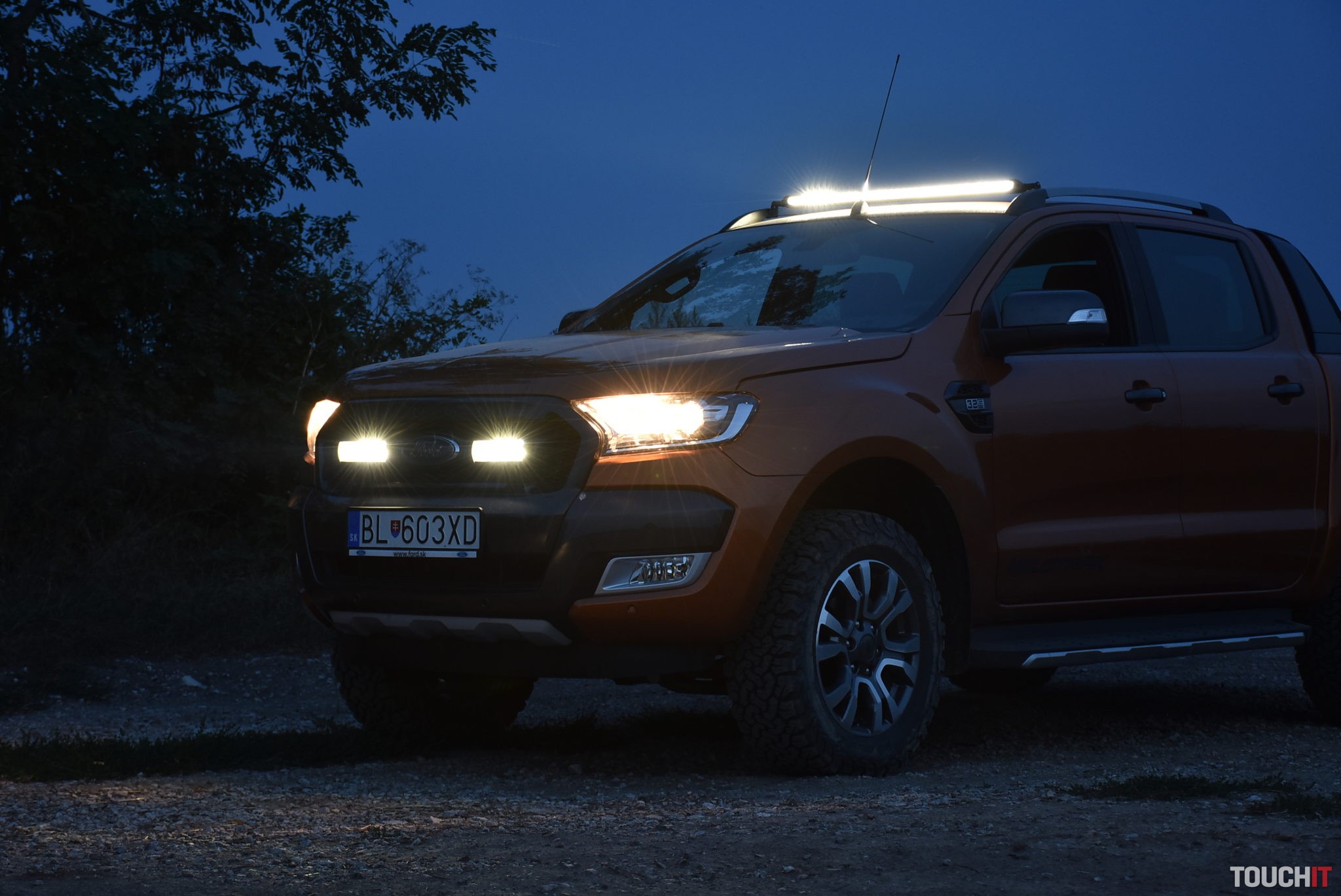 S takýmto obutím prejdete 70% ťažkého terénu s redukovanou 4kolkou. Uzávierku využijete iba v skutočne náročnom teréne, v prípade uviaznutia a pod., teda špecifické prípady. Každopádne, ak využívate Rangera prevažne teréne, tak toto obutie by malo byť samozrejmosťou. Čo ma však prekvapilo je fakt, že na bežných komunikáciách nebolo toto obutie extrémne hlučné. Je počuť viac ako klasické cestné pneu, ale nie je to nič strašné a dá sa stým bezproblémov existovať – dennodenne. Prešiel som trasu BA – NR a späť po dialnici, pričom som z toho nemal vôbec nepríjemný pocit. Druhou zmenou je integrácia vysokosvietivej LED rampy na strechu vozidla a dvoch prídavných LED svetlometov do prednej masky, ktorá je z časti upravená. Toto je zmena, ktorú uvítate “všetkými desiatimi”. No najmä vtedy, ak vaše cesty vedú do terénu aj proti noci. Ranger nemá extra výkonné svetlomety, čo je jeho slabinou, ale ak si dáte namontovať tieto LED rampy, tak na bežné svetlá zabudnete. Zákaz používania strešnej rampy na bežných komunikáciách – iba v teréne a mimo oficiálnych ciest! Jedine, že by ste stretli neprispôsobivého šoféra :). Presný výkon nie je uvedený, ale verte, že tieto svetlá robia z noci deň. Spodné LED rampy sú prepojené s diaľkovými svetlami a zapínajú sa spoločne. Vrchná LED rampa má samostatné zapínanie. Verte, že nechcete stáť pred autom, keď sa tieto svetlá rozsvietia – zaručený “blackout” na minútu. Počas večerných a nočných jázd lesom som ich veľmi ocenil, ale aj tak ešte niečo chýba. Je pochopiteľné, že občas potrebujete odniekadiaľ vycúvať, no základné cúvacie svetlá sú tragédiou! V noci/večer nevidíte takmer nič, čo je nebezpečné – pre okolie aj auto. Kamera tu síce je, ale svetlo je prvoradé. Z tohto dôvodu by som dal ešte jednu LED rampu na zadnú hranu strechy – smerom dozadu.Treťou zmenou je hliníkovo-plechová roleta korby (kryt), ktorá má výhodu v tom, že kontúry Pick-Upu zostávajú zachované a zároveň môžete túto časť využívať ako uzamykateľný batožinový priestor. Môže sa však stať, že počas silného dažďa vnikne voda aj do útrob korby, ale nie je to strašné – treba s tým ale počítať. Výhodou je aj to, že ak občas prenášate vyššie predmety, tak nie ste nijak obmedzovaní – hardtop má v tomto nevýhodu (samozrejme aj rôzne výhody). Roleta funguje veľmi pekne, ľahko sa zaťahuje a má samostatný zámok. Potešila ma aj drobnosť, ktorou je malá plynová vzpera na dverách korby. Po otvorení samostatne zídu dole a netresknú. Otváranie i zatváranie je podstatne príjemnejšie. Hodnotenie TOUCHITNa týchto dvoch verziách poznať, ako málo stačí k tomu, aby sa zmenilo tak veľa. Ford Ranger zostáva stále výborným pracantom, ktorý vás bude baviť aj počas bežných dní, čo je výhoda – nielen tohto Pick-Upu. Prejdete s ním neuveriteľný terén, potom sa vyrútite na cestu ako rádový občan a idete do kancelárie. Okrem toho ponúka tento model množstvo technológií a z časti ho môžeme označiť aj za reprezentatívny. Treba však poznamenať aj to, že konkurencia nespí a stále prichádzajú na trh zaujímavé novinky – aktuálne je to veľmi podarené Mitsubishi L200 6. generácie. Základná technická špecifikácia: Ford Ranger WildTrak 3.2 TDCi Duratorq