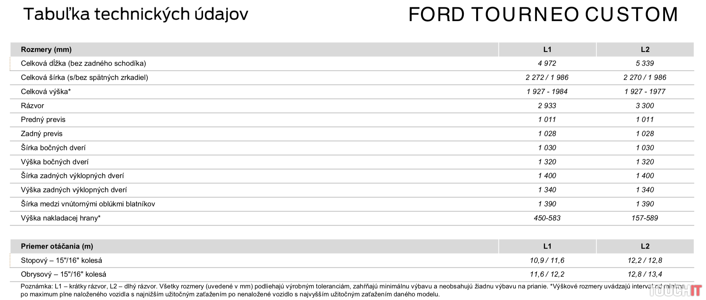 Absenciu má parkovacia kamera, ktorú by som tu určite chcel. Taktiež by som prial aj bezkľúčové otváranie + štartovanie. Snáď sa dočkáme v ďalšej generácii. Adaptívny tempomat mi nechýbal, ale ak by tu bol, tak je to iba plusom. Moderný systém sledovania mŕtvych uhlov nie je prítomný, ale má za seba náhradu. Tourneo Custom má veľké a zdvojené spätné zrkadlá, pričom malá spodná časť nahrádza túto technológiu – vykrýva mŕtvy uhol. Spätné zrkadlá treba sledovať, vždy! Pochvalu si zaslúži už spomenutý multifunkčný kožený volant, ktorý má množstvo ovládacích prvkov, je nastaviteľný a vyhovujúci je aj jeho sklon. Z multimédií nechýbalo vôbec nič, takto si predstavujem modernú dodávku alebo prerastený VAN? JFord Sync 3 ponúka okrem hlasového ovládania v českom jazyku aj podporu aplikácií Apple CarPlay a Android Auto, pričom nechýba ani natívna navigácia, ktorá funguje celkom dobre. Oceňujem aj možnosť vytvoreniaWi-Fi hot-spotu a detailné nastavenia všetkých funkcií, vrátane audia, ktoré je síce bez konkrétneho označenia, ale hrá dobre. Reproduktory majú k dispozícii aj zadní pasažieri (rovnako ako výduchy ventilácie). Spomenúť treba aj funkciu „sluha“, ktorá deaktivuje všetky multimédiá a obmedzí možnosť nastavenia väčšiny systémov. Tento režim využijete v prípade, ak napr. vaše auto požičiavate cudzej osobe alebo ho ide niekto preparkovať a pod. Chválim aj veľké množstvo nabíjacích USB-A portov a 12V zásuviek, ktoré sú nutnosťou! Hodnotenie TOUCHIT Ford Tourneo Custom mám rád a ak sa preňho rozhodnete, budete ho mať radi aj vy! Ponúka zaujímavý dizajn, dobré jazdné vlastnosti a veľkú dávku praktických riešení, vrátane variability vnútorného priestoru. Aj napriek rôznym uvedeným nedostatkom si stále myslím, že tento model je dobrou voľbou, ktorá vás tak ľahko neomrzí. Dodať treba, že je to aj podstatne lacnejšia alternatíva oproti (nemeckej) konkurencii v danej triede. Ak sa zmení pár detailov, najmä spôsob uchytenia zadných sediel, tak to bude perfektné auto. Myslíte si, že tento model nie je možné využívať ako „daily car“? Je to možné, mám to vyskúšané! Zdá sa byť nadrozmerný, ale stále je dostatočne obratný a vojdete s ním aj do väčšiny podzemných garáží (nebude to príjemný pocit, ale strechu nechytíte). Ak si ho zaobstaráte, tak Tourneo Custom vám bude dobrým pomocníkom – v rodine i v biznise. Treba vyskúšať, za to nič nedáte.