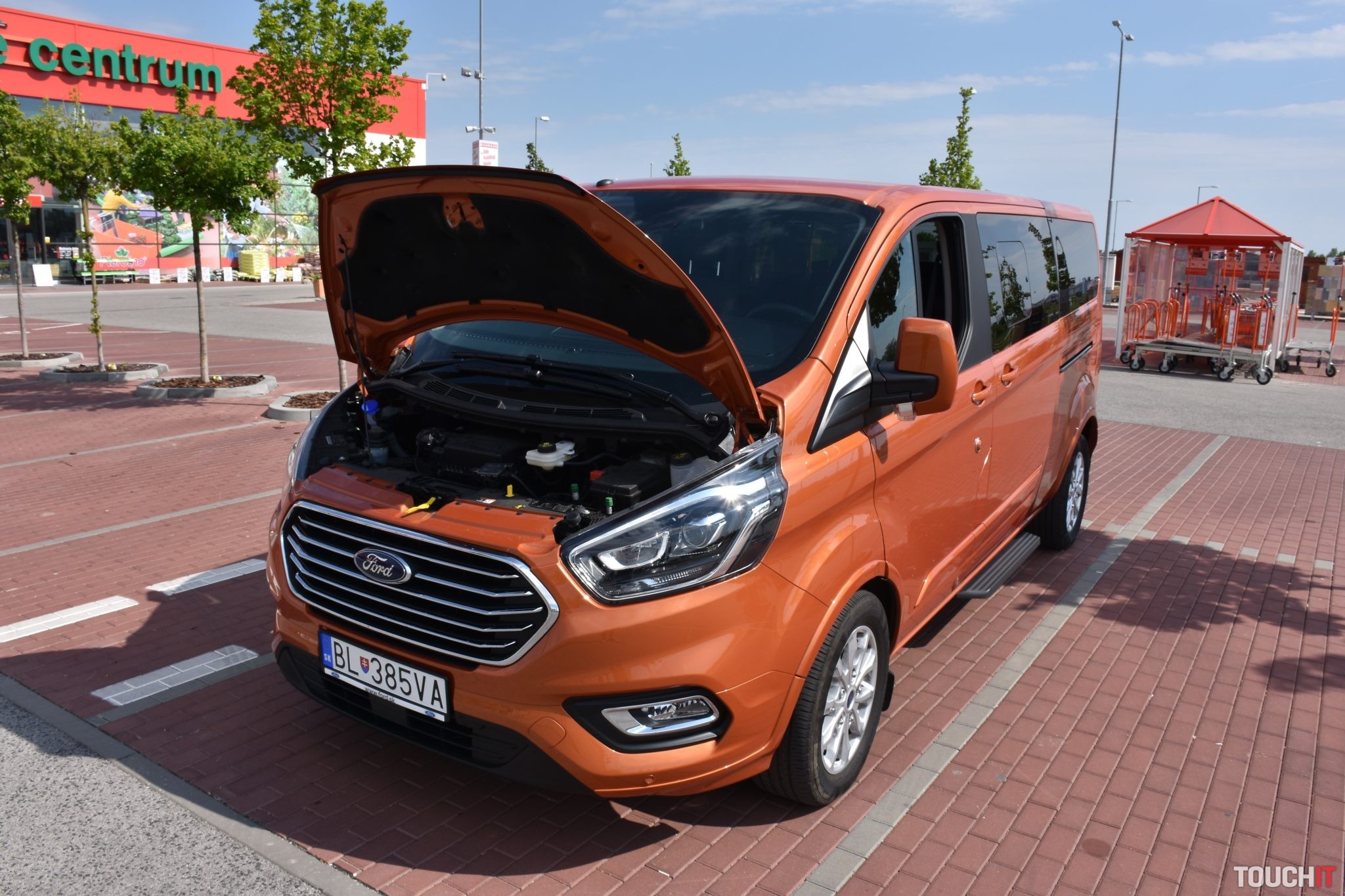 Teraz nahliadneme do interiéru, ktorý prešiel viditeľnou a hlavne praktickou modernizáciou. Tieto zmeny potreboval Ford Tourneo Custom ako soľ! Pôvodný interiér bol fajn, ale chýbalo mu viac odkladacích priestorov, pričom miesta bolo dosť – nevyužitého. Teraz je to presne tak, ako to má byť. Už letmým pohľadom na palubnú dosku zaregistrujete jej nový dizajn a viacero praktických riešení. Základným prvkom je stred palubovky, kde sa nachádza veľký 8“ LCD displej, pod ktorým sa nachádzajú fyzické tlačidlá na ovládanie multimédií a následne panel klimatizácie. Klimatizácia je 2-zónová, jedna zóna patrí prednej časti a druhá zadnej. Nechýbajú ani vyhrievané predné sedadlá a vyhrievané čelné sklo, čo je v zime neoceniteľným pomocníkom. Strednú časť palubovky zakončuje vyčnievajúci „pult“, v ktorom je zakomponovaný volič automatickej prevodovky a krytý odkladací priestor na poháre alebo iné drobnosti. Výborne tu držia mobilné telefóny. Tesne nad týmto priestorom je hlavný USB-A port (nabíjací/dátový) a 12V zásuvka. Modernizovaná palubovka ponúka aj dva otváracie priečinky pod čelný sklom a jeden klasický pred spolujazdcom. Okrem toho sú prítomné ešte 4 držiaky na fľašky a nápoje v rôznych veľkostiach. Takto si predstavujem praktický interiér. Nezabúdam ani na výplne predných dverí, ktoré ponúkajú ďalšiu dávku odkladacích priestorov v rôznych veľkostiach. Dvojica zadných posuvných dverí neponúka žiadny odkladací priestor, čo je dané ich konštrukciou. Namiesto toho nájdete pár priečinkov na nápoje a drobnosti v bočnej výplni vozidla. Z pohľadu šoféra nemám takmer žiadne výhrady. Oceňujem vyšší posed a tým pádom aj výborný výhľad z vozidla na každú stranu. Ovládacie prvky sú rozložené optimálne a aj keď nie je palubovka orientovaná priamo na vodiča, tak všetko je na dosah ruky. Sedenie vs. pohodlie vs. variabilita interiéru – Ford Tourneo Custom je hlavne o pridanej hodnote, ktorú má majiteľovi a posádke ponúkať. To sa mu z pohľadu sedenia, resp. vyhotovenia sedadiel darí dlhodobo. Už predošlá generácia mala veľmi dobre spracované sedadlá, na ktorých sa dali bez ujmy na zdraví presedieť stovky kilometrov. Inak tomu nie je ani v tomto prípade. Predné sedadlá sú iba dve, čo je ideálna konfigurácia, nakoľko má šofér, ale aj spolujazdec plnohodnotné sedadlo s dobrým rozsahom nastavenia, čo je dôležité. Chýbať nesmú ani lakťové opierky a dostatok priestoru z každej strany. Bočné vedenie sedadiel je plytké, ale v tomto prípade je to jedno, základom je pohodlie. Prial by som však, ak by boli predné sedadlá otáčacie, čo by sa dalo využiť pri kempovaní a pod. (viem, nie je to karavan, ale bolo by to fajn). Spredu sa presunieme dozadu, kde je v dvoch radoch ďalších 6 samostatných sedadiel. Tie sa dajú otáčať (nie na platforme, treba ich vybrať a otočiť) podľa potreby, ale musia sadnúť do predurčených pozícií, takže ich prehadzovanie je slušná hádanka a zároveň silové cvičenie. Vyhotovenie sedadiel je veľmi dobré – sťažovať sa pravdepodobne nebudete ani počas dlhej cesty na dovolenku. Stredné sedadlá majú plastovú zadnú časť operadla, ktorá po sklopení slúži ako odkladací priestor na nápoje a iné veci – veľká lakťová opierka. Krajné sedadlá disponujú aj ISOfix úchytmi. Mohutná konštrukcia každého sedadla zaručuje vysokú bezpečnosť, ale z pohľadu váhy, resp. manipulácie s týmito sedadlami to nie je ideálne. Ford sa nepoučil a systém uchytenia a vyberania sedadiel zostal rovnaký, ako mal predchodca. Každá pozícia má svoje drážky, takže sedadlá nie sú posuvné a ich vyberanie je často zložité, nakoľko sú veľmi ťažké. Ideálne by boli koľajnice pozdĺž celej zadnej časti, v ktorých by boli sedadlá ukotvené a dalo by sa s nimi krásne pracovať. Aj rýchle zväčšovanie priestoru by bolo efektívnejšie. V aktuálnom vyhotovení je nutné kvôli zväčšeniu manipulačného/batožinového priestoru sklopiť operadlá alebo vybrať jednotlivé sedadlá. Podľa toho sa odvíja aj kapacita batožinového priestoru. Spomenúť treba aj množstvo USB-A nabíjacích portov v celej zadnej časti, vďaka čomu bude mať každý pasažier svoje zariadenie vždy nabité – okrem toho sú prítomné aj 12V zásuvky. Absenciu mala iba 230V zásuvka, resp. menič napätia, ale za príplatok je k dispozícii. Páčili sa mi aj na mieru vyrobené gumené rohože, ktoré budú počas zimných mesiacov nutnosťou. Pri pohľade do batožinového priestoru, ak sa to tak dá nazvať, nakoľko celá zadná časť sa dá označiť za batožinový priestor, je vidieť, že toto nie je žiadne MPV, ale poriadne auto, kde sa naložíte všetko, čo budete potrebovať. Presné čísla nie sú známe, ale môžete si byť istí, že priestor vám chýbať nebude. Ak aj áno, tak vyhodíte zadný rad sedadiel na okrem 5 osôb zoberiete aj niekoľko bicyklov + batožinu. Výhodou sú aj obrovské zadné dvere, ktoré môžu slúžiť ako dočasná strieška počas rôznych aktivít. Resumé sekcie – interiér prešiel potrebnými zmenami, ktoré sú výborné, ale zostalo aj veľa pôvodných neduhov, ktoré by mohol výrobca v nasledujúcej generácii odstrániť. Testovaný model mal pod prednou kapotou nízko uložený 2-litrový naftový 4-valec (2.0 TDCi) s výkonom 125 kW (170 ps) a max. krútiacim momentom 405 Nm. Motor bol spriahnutý so 6-stupňovou automatickou prevodovkou s možnosťou manuálneho radenia – tlačidlo zmeny rýchlostí je umiestnené dosť nešťastne. 2-litrový diesel má sily a výkonu viac než dosť a ani po plnom naložení auta nie je cítiť výrazný deficit pružnosti. Tá je veľmi slušná a to v relatívne širokom spektre otáčok. Predbiehanie na okresných cestách je pohodové,