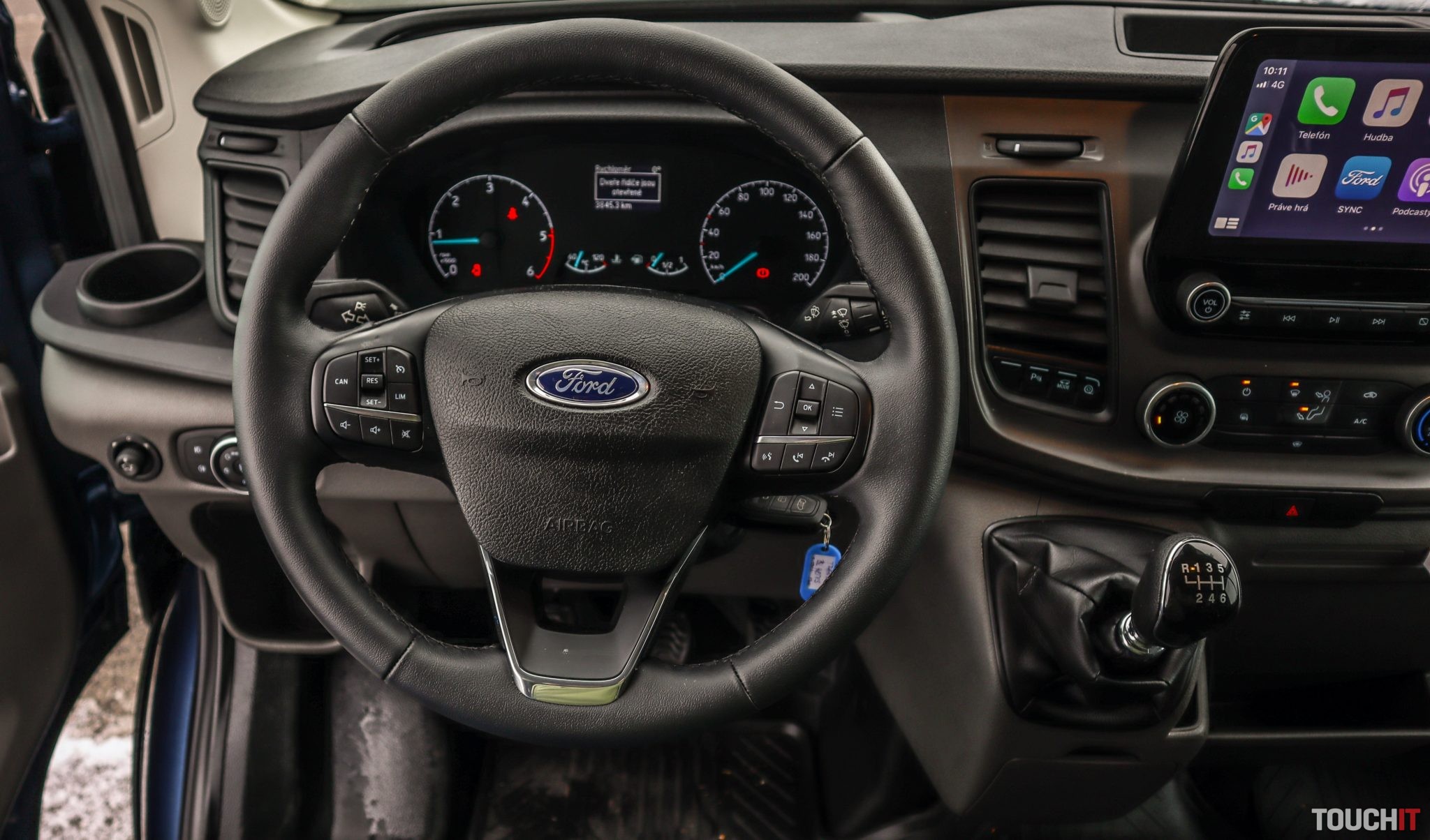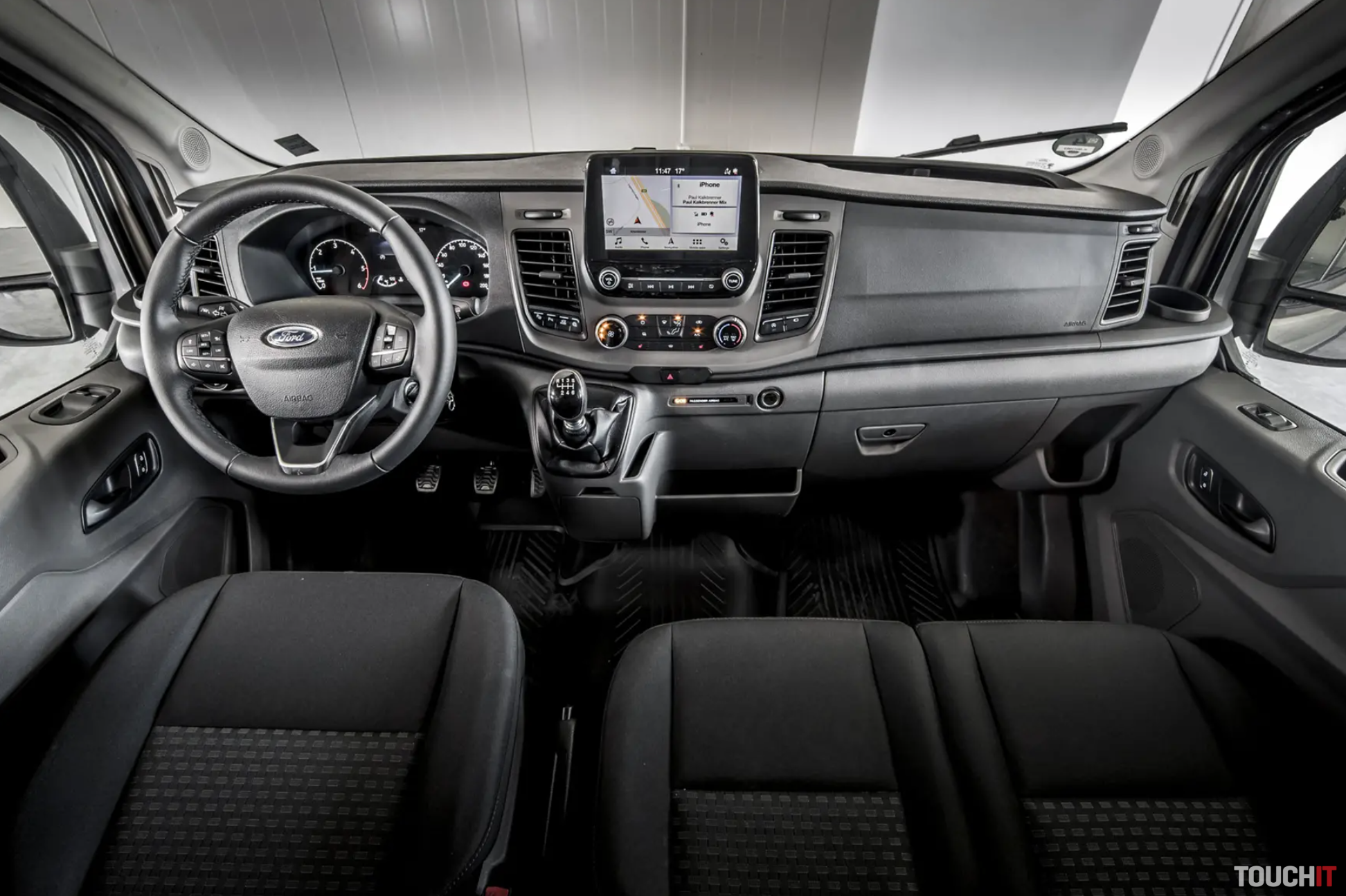 Ceníme, že nový interiér nesie prvky osobných automobilov, čoho prvým dôkazom je výborný kožený a multifunkčný volant s príjemnou hrúbkou venca a optimálnym sklonom. Po druhé je to stredová konzola s 8“ dotykovým LCD displejom so systémom Sync 3 (v tomto prípade Sync 2.5), ktorý podporuje všetky prvky, ktoré nájdete aj v osobných automobiloch Ford – Apple CarPlay, Android Auto, zdieľanie Wi-Fi siete, aplikáciu FordPass (vzdialená kontrola vozidla), režim sluhu ale aj MyKey, vďaka čomu môžete externému užívateľovi vozidla prispôsobiť určité systémy. O tomto sa nám v tejto kategórii pred pár rokmi iba snívalo, a to stále nie je všetko. Aktívne využívame napr. Apple CarPlay, teda zrkadlenie rôznych navigačných aplikácií (Waze, Google Mapy a pod.), ktoré cestovanie veľmi uľahčujú. Ak týmto veciam neholdujete, tak je prítomná aj predinštalovaná Ford navigácia.