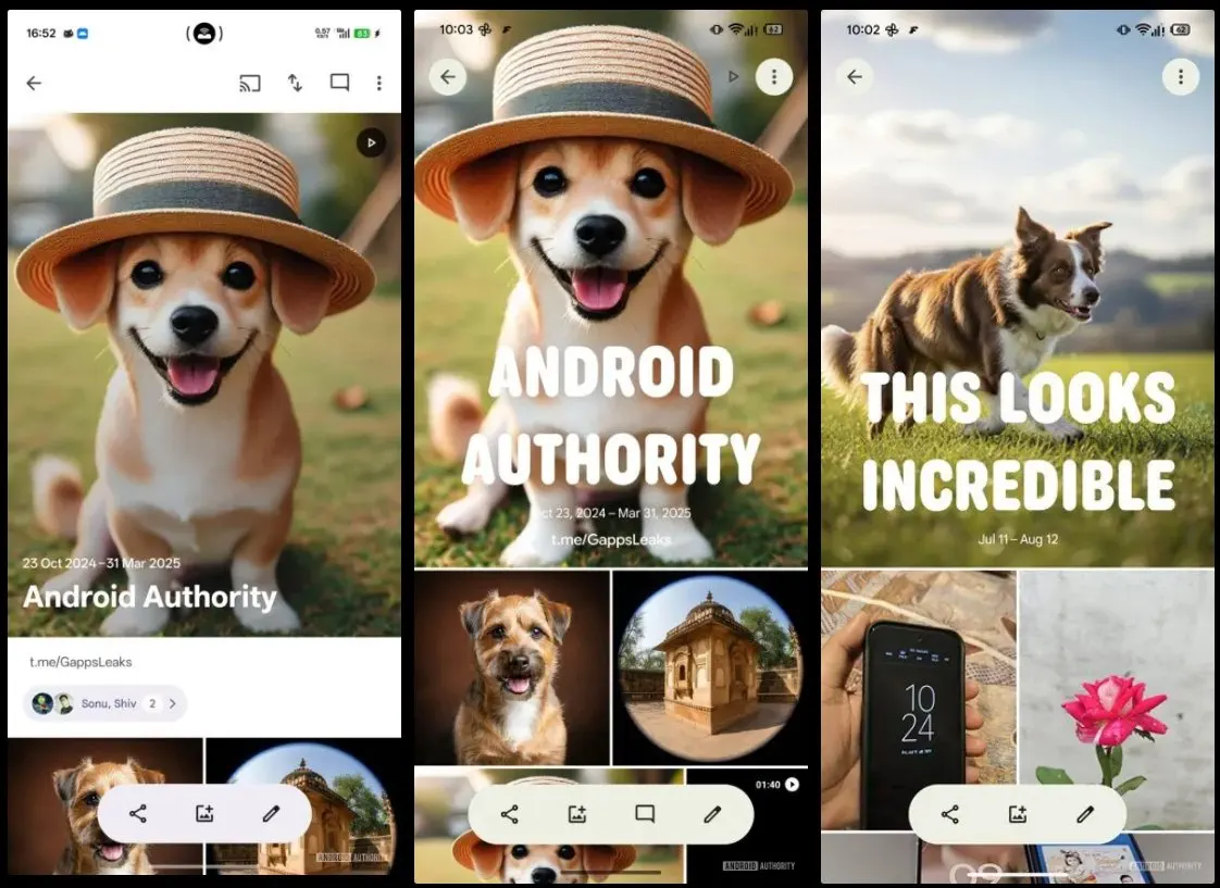 To však nie je všetko. Google mení aj ovládanie albumu. Ponuka s tromi bodkami obsahuje nové voľby „Prehrať hlavné momenty“ a „Cast“, pričom tlačidlo na prehranie zostáva prístupné aj vpravo hore na obale albumu. Zmenou však prešla možnosť triedenia, ktorá už nie je dostupná priamo nad obalom, ale nachádza sa výhradne v editačnom režime. Aj tlačidlo komentárov sa presúva, tentokrát do plávajúcej lišty v spodnej časti rozhrania.