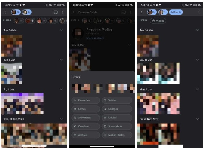 Pri hľadaní obrázkov konkrétnej osoby, Fotky teraz ponúkajú rad filtrov, priamo pod vyhľadávacím poľom. Tu budete môcť vyhľadávanie spresniť výberom typov médií, ako sú videá, selfie a snímky obrazovky. Ešte dôležitejšie je, že do svojho počiatočného vyhľadávania môžete pridať ďalších ľudí, aby ste si mohli prezerať obrázky a videá, ktoré obsahujú všetkých ľudí, ktorých chcete nájsť. Nájsť obrázky konkrétnej skupiny ľudí nikdy nebolo jednoduchšie.
