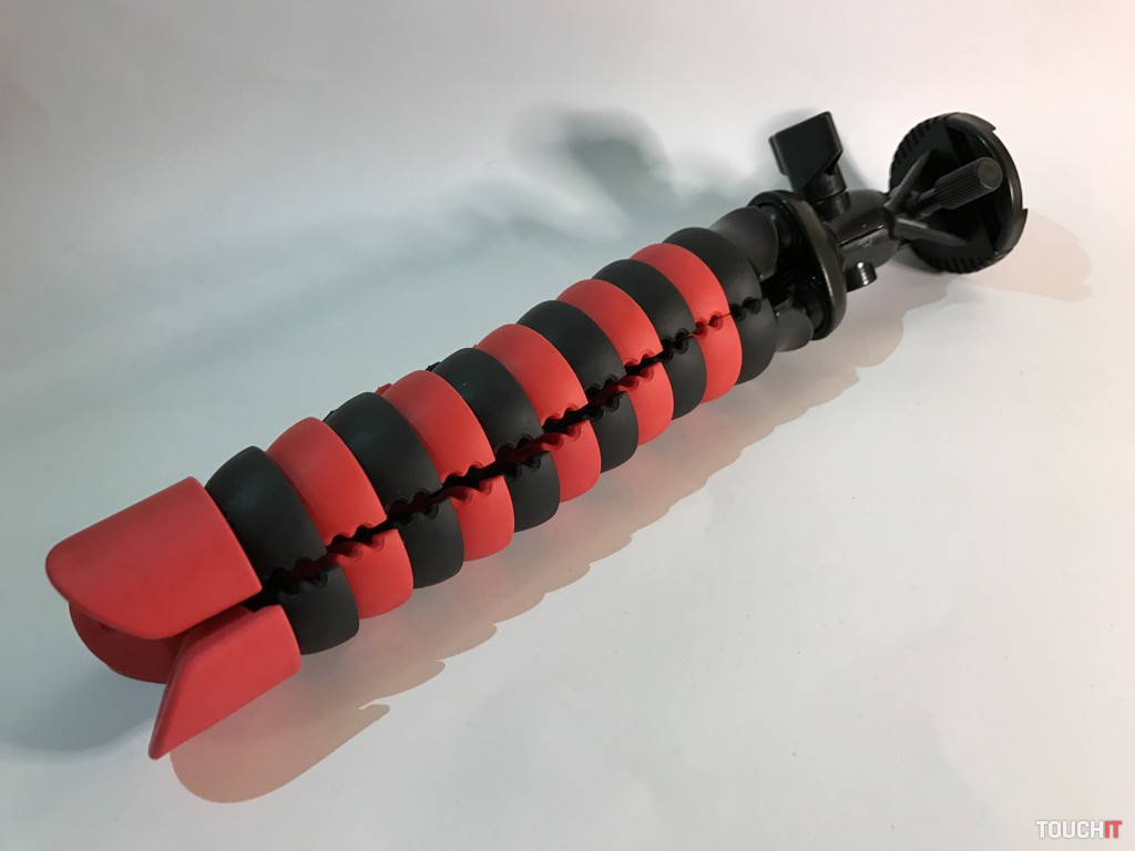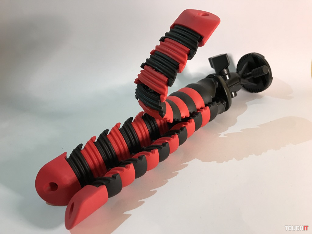 Jednoduchý tripod s rôznymi možnosťami úchopu a flexibilnými nohami. Môže byť „klasickým“ statívom alebo ho môžete omotať o konár stromu a pod., je plne prispôsobiteľný. Siahli sme po ňom aj z toho dôvodu, že max. udávaná nosnosť je 3 Kg. Ak to bude potrebné, znesie aj bežnú zrkadlovku bez toho, aby sa „rozsypal“. Pri takýchto druhoch (s flexibilnými nohami) statívov je ten problém, že ak nie je dostatočne odolný, tak sa po zaťažení rozídu nohy. Vyhotovenie zovňajšku je celoplastové, čo nie je najideálnejšie. Spokojnejší by sme boli, ak by bola min. časť s kĺbom a aretáciou kovová.