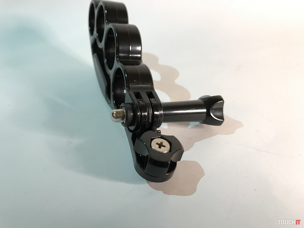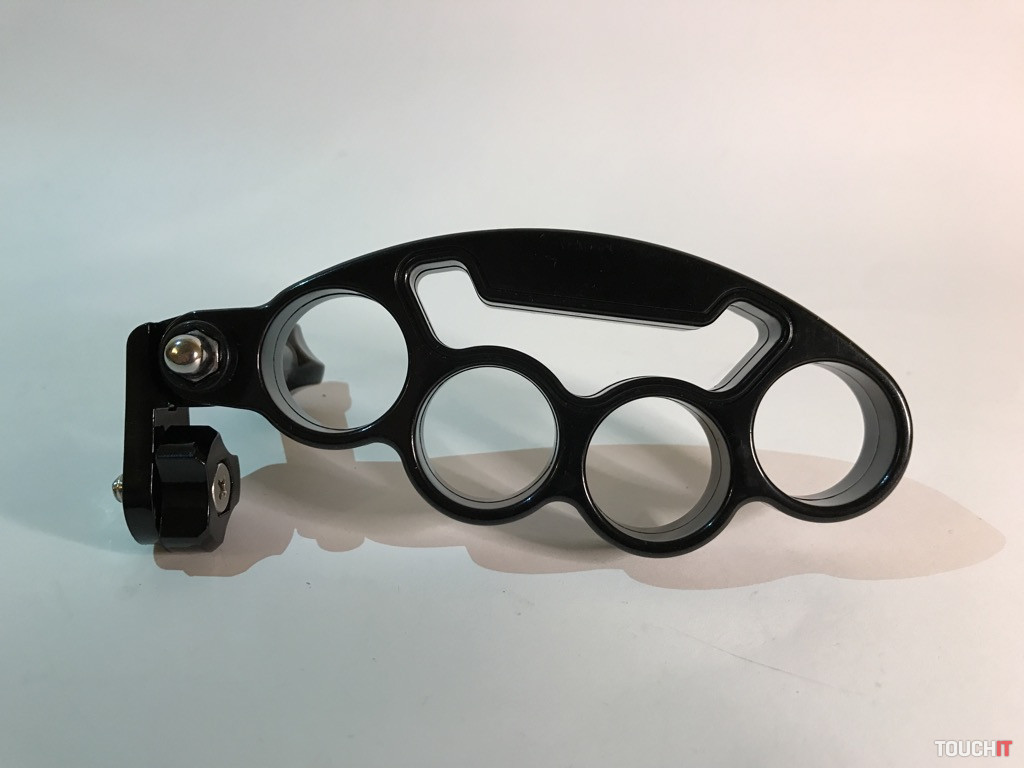Atypický držiak, miestami by sme ho mohli nazvať provokačným, ale jeho účel je jasný. Žiadne násilie, ale bezpečné uchopenie a eliminácia vytrhnutia zariadenia, resp. držiaku z rúk. Boxer sa veľmi dobre drží, je vyrobený z pevného plastu a jeho vrchná časť tvorí úchyt pre ďalšie príslušenstvo. My sme použili adaptér s 1/4“ skrutkou, kde umiestňujeme držiak pre smartfón.