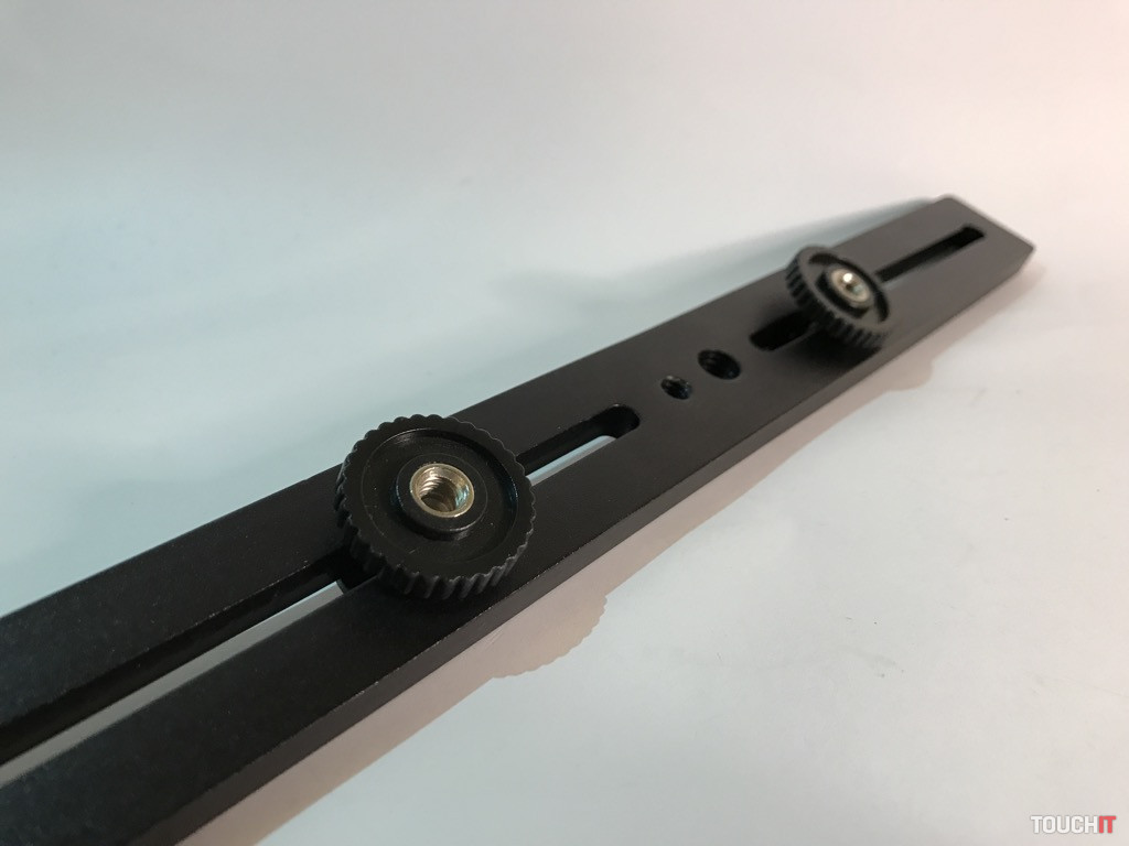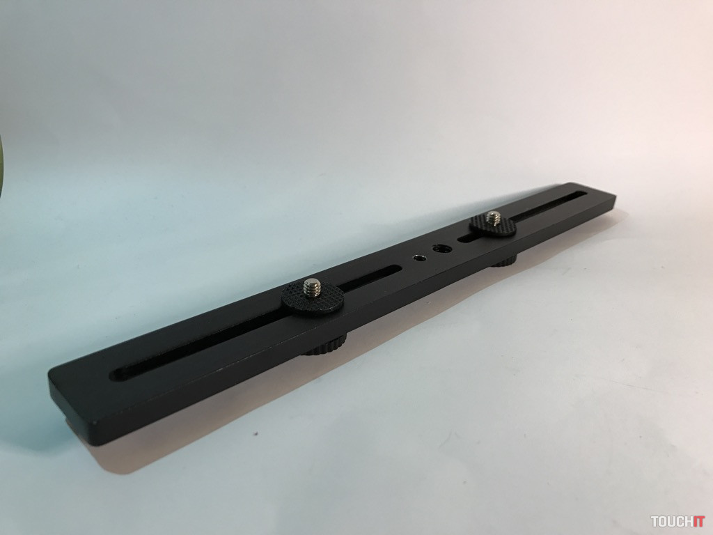 Tento produkt nie je tak celkom na bežné používanie v teréne, resp. na bežné nosenie vo vaku. Ide o jednoduchú pomôcku s dvomi 120 mm dráhami, na ktorých sú dve 1/4“ skrutky pre rôzne príslušenstvo. Výhoda spočíva v tom, že z vrchnej časti je 1/4“ skrutka a v spodnej časti 1/4“ závit.