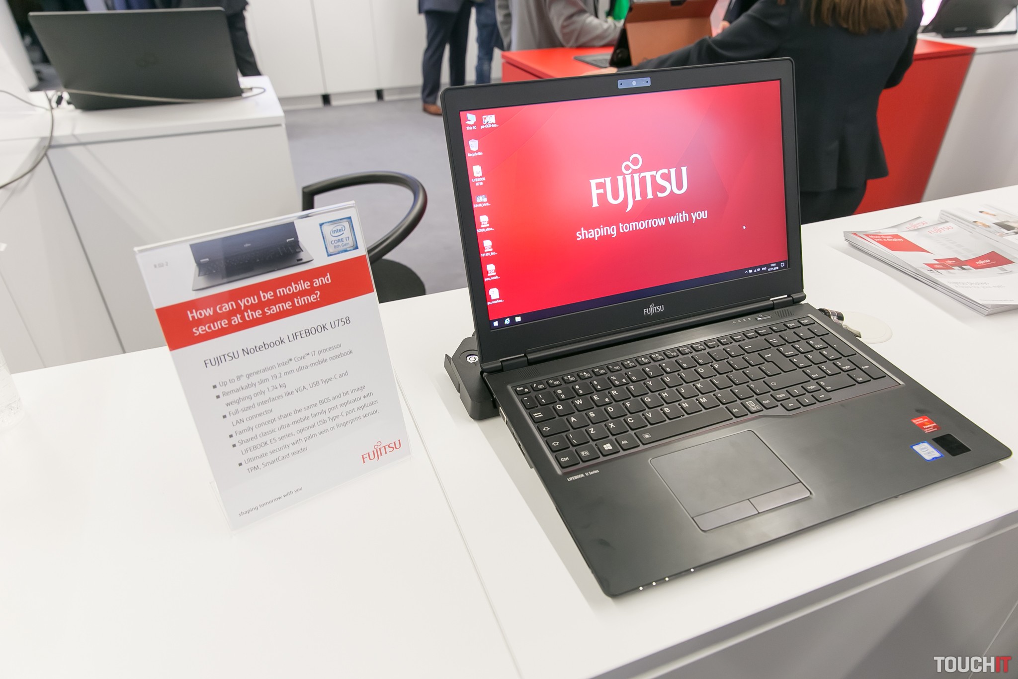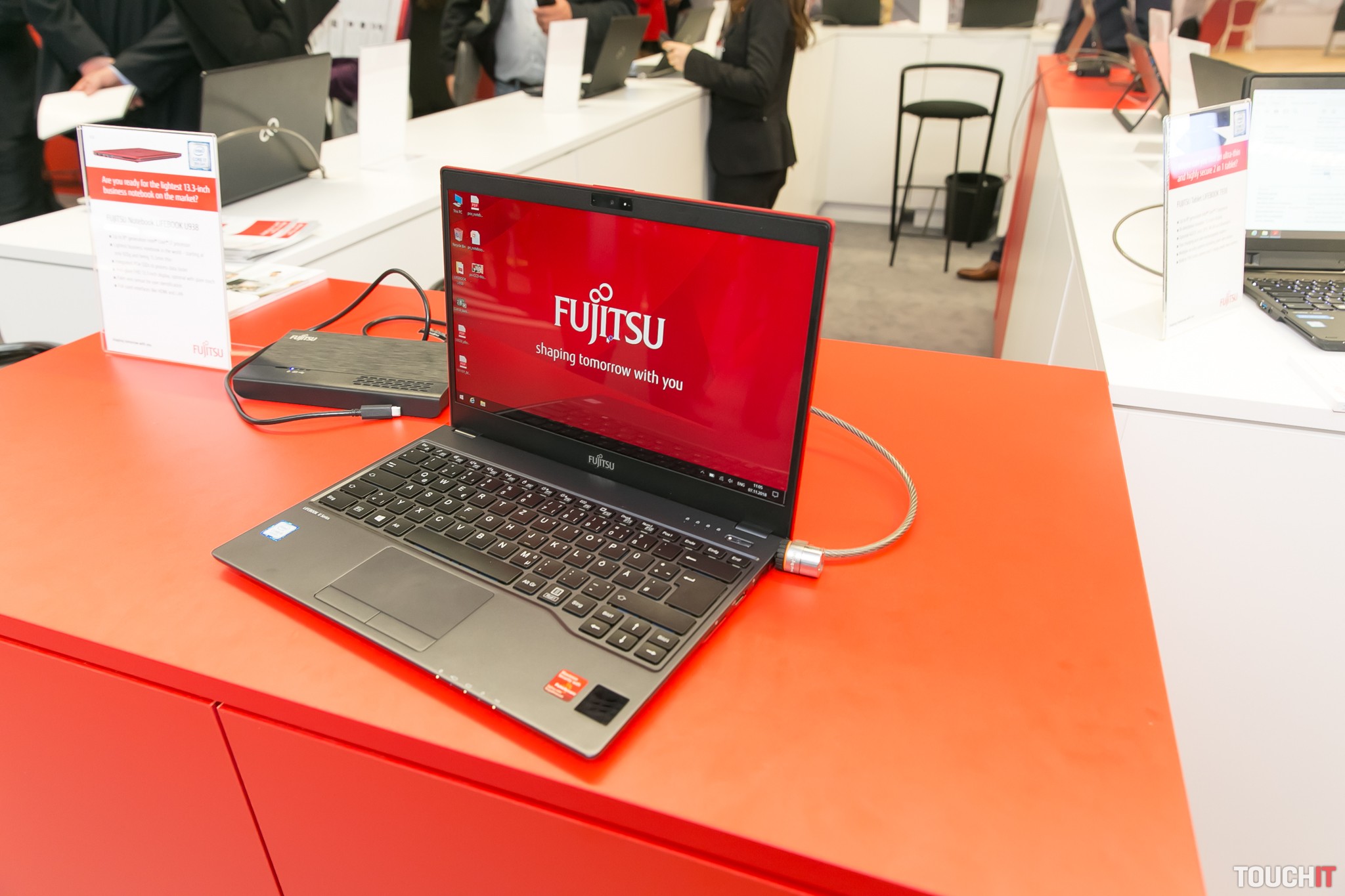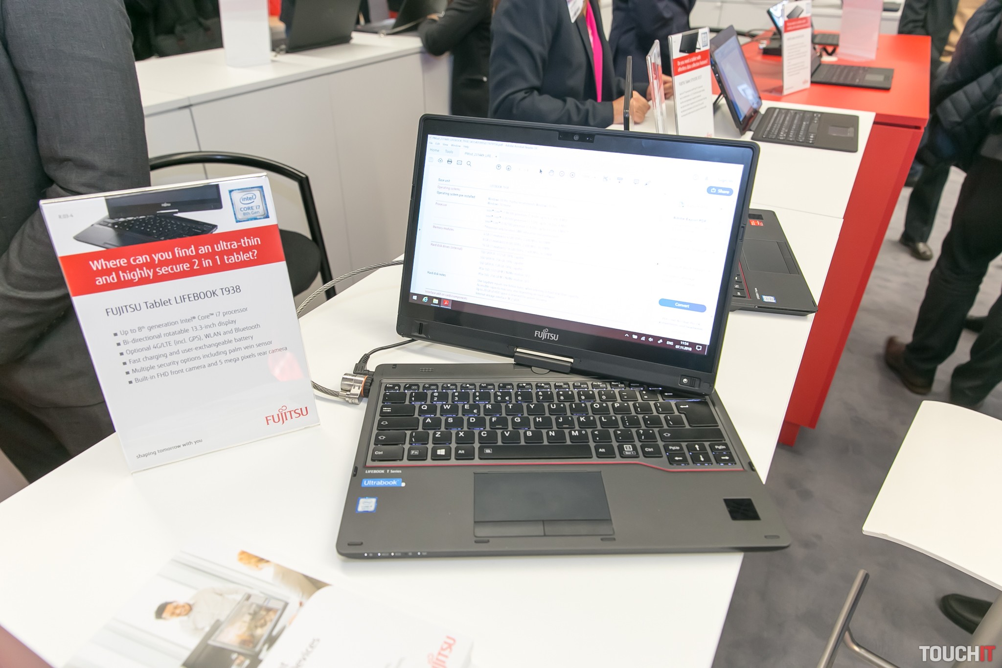 Fujitsu je mimochodom v Nemecku mimoriadne obľúbená značka podnikových zariadení a na zložení návštevníkov to bolo vidieť. Našim hlavným záujmom bolo však demonštračné centrum. Tu sme si našli notebooky, počítače, tablety, displeje a ďalšie príslušenstvo a ideme hneď na to. Čerešničkou na torte bol notebook LIFEBOOK U938 v krásnej červenej farbe. Je to úplne najľahší biznis notebook na svete s 13,3 palcovým displejom. Vo výbave je 8. generácia procesora do Intel Core i7, pričom hmotnosť tohto notebooku je len 920 gramov. Hrúbka notebooku je je 15,5 mm, vo výbave je SSD disk s PCIe pripojením. Kapacita SSD môže byť až 1 TB a RAM má kapacitu až do 20 GB. 13,3 palcový displej je tmavý, neodráža svetlo, ak budete priať dotykový displej, ten už bude lesklý. Rovnako si môžete vybrať, či sa budete do počítača prihlasovať cez odtlačok prsta alebo s rozpoznaním cievneho riečišťa na svojej dlani – PalmSecure (to Fujitsu viac odporúča). Nás potešili aj poty v plnej veľkosti  – HDMI a tiež Ethernet. Tak to má byť. Veríme, že budúci rok sa tento notebook objaví aj s displejom otočným o 360°. Zatiaľ je prísľub výrobcu na podsvietenú klávesnicu a ešte o niečo nižšia hmotnosť. Cena súčasného modelu je od 1350 eur vyššie.