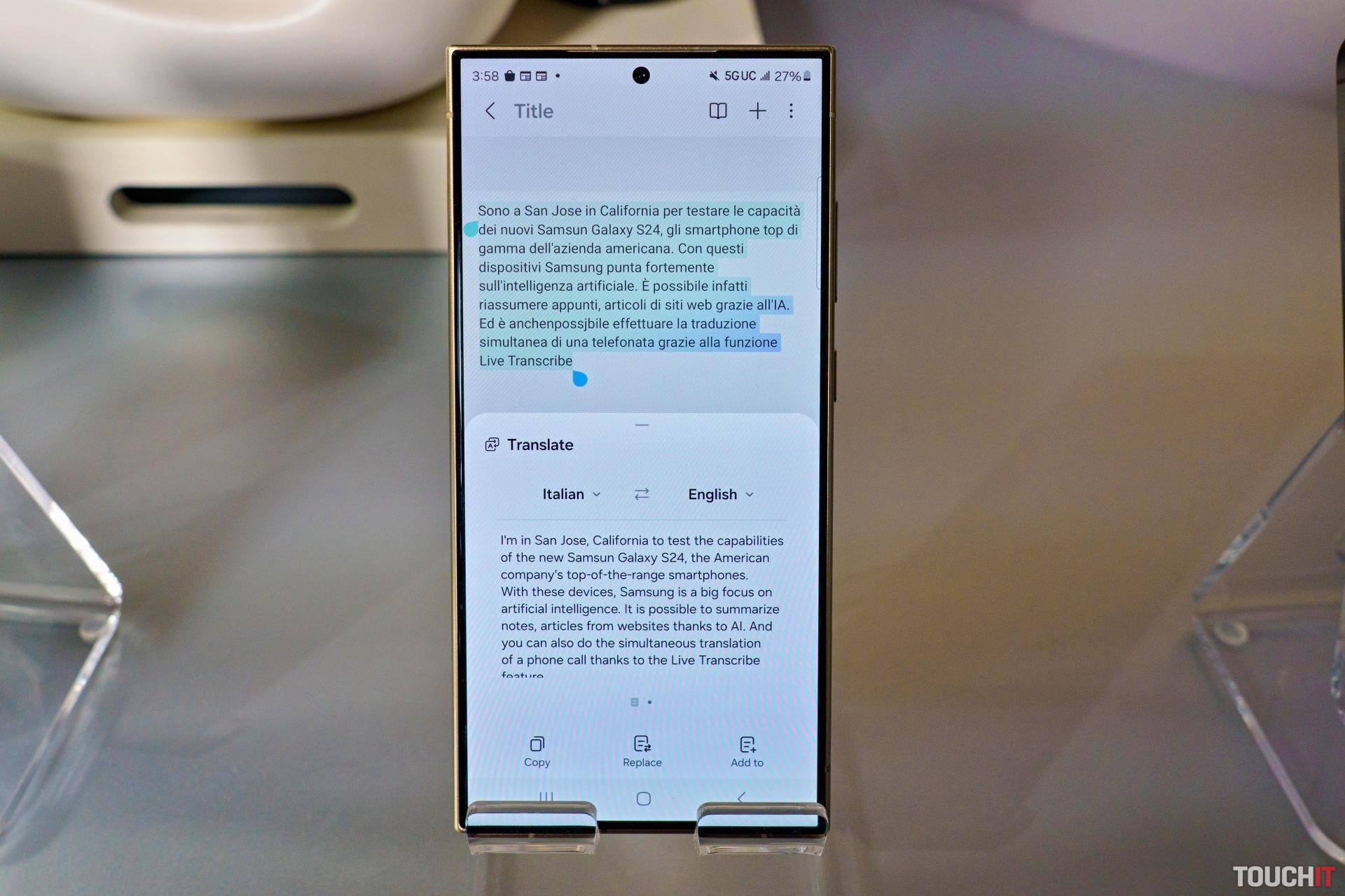 Tiež si môžete vybrať funkciu prepisu hovoru do textu. Nemusí to byť len z telefonického hovoru, S24 položíte na stôl a spustíte túto funkciu, ktorá prepisuje do textu celú komunikáciu. Pritom dokáže odlíšiť, ktorú časť hovoru povedala konkrétna osoba.