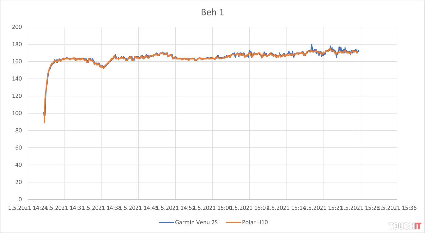 Výborná je tiež presnosť merania tepu počas behu. Opäť som si nevšimol žiadne výraznejšie odchýlky v porovnaní s dátami, ktoré mi nameral hrudný pás. Je pravda, že väčšina dnešných hodiniek ponúka dostatočne presné meranie tepu počas behu, avšak Venu 2S patrí k tomu najpresnejšiemu v cene do 400 eur.