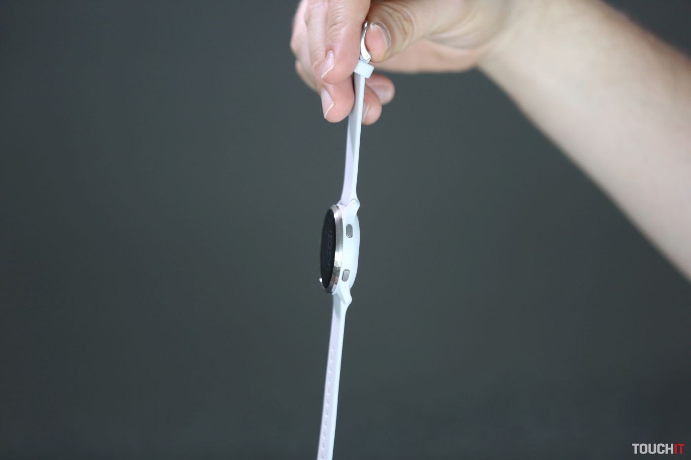 Hodinky sa nabíjajú pomocou špeciálneho konektora, ktorý Garmin používa prakticky vo všetkých novších hodinkách. Môžete ho vidieť na fotografii. Súčasťou balenia je USB kábel s týmto konektorom. Škoda však, že výrobca neponúka aj USB-C kábel s nabíjacím konektorom.