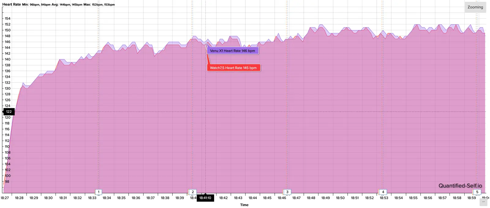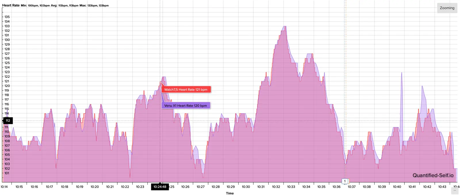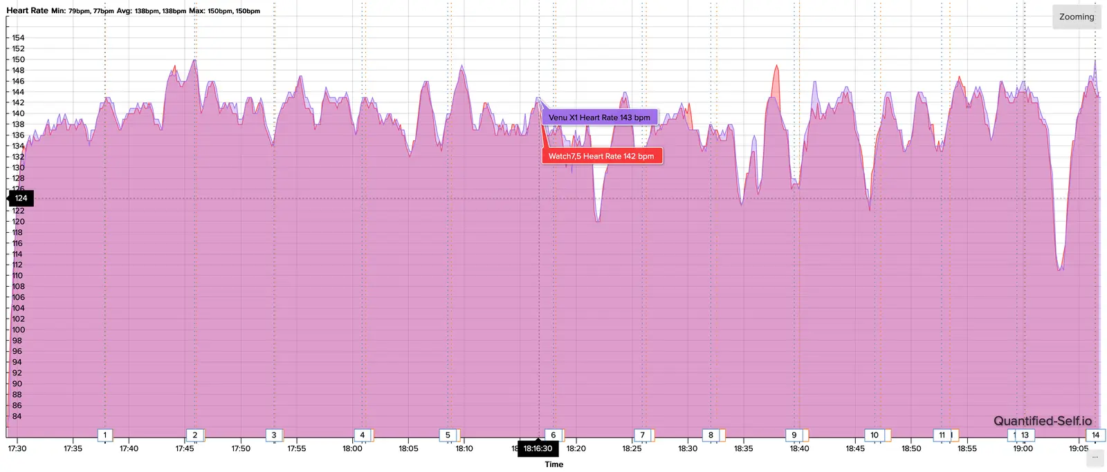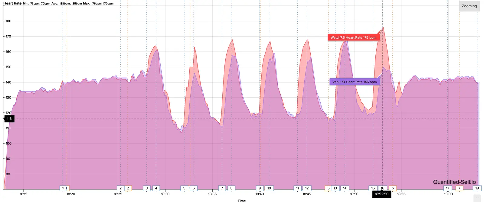 Meranie tepu počas športovania malo dobrú presnosť počas jednoduchých behov aj bicyklovania. Trochu ma prekvapila horšia presnosť počas intervalového behu, kedy hodinky nedokázali dostatočne rýchlo reagovať na zmenu frekvencie počas rýchlych minútových úsekov. Je možné, že ďalší takýto tréning zvládnu lepšie, avšak v tomto prípade mal senzor problémy, ktoré som nečakal.
