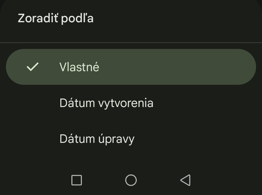 Zoraďovanie položiek zatiaľ nefunguje v samostatným zoznamoch – teda položkách, ktoré majú svoj štítok a zobrazujete ich len v rámci tých s rovnakým štítkom. Najviac užitočná môže byť zoraďovacia možnosť – Dátum úpravy. Takto máte vždy najviac upravované položky navrchu. Napríklad pri aktualizácii nákupných zoznamov atď.