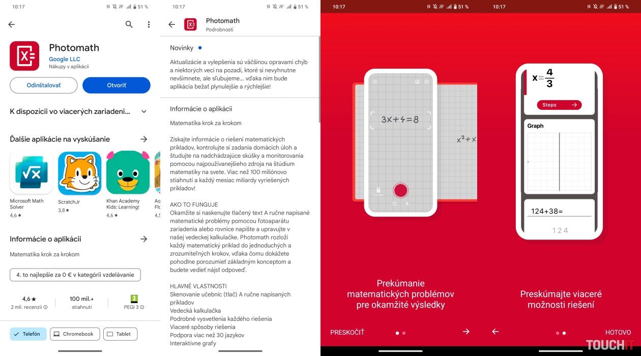 Ak si Photomath nájdete v obchodoch s aplikáciami, možnože si všimnete, že má vysoký počet stiahnutí aj pozitívnych recenzií. Dôvod je ten, že Photomath nie je úplne nová aplikácia. Na trhu je od roku 2014, avšak Google ju dávnejšie kúpil. Vývojári aplikácie sú už vyše roka súčasťou Googlu a v týchto dňoch sa zmena vydavateľa prejavila aj v aplikačných obchodoch – vydavateľom Photomathu je Google.