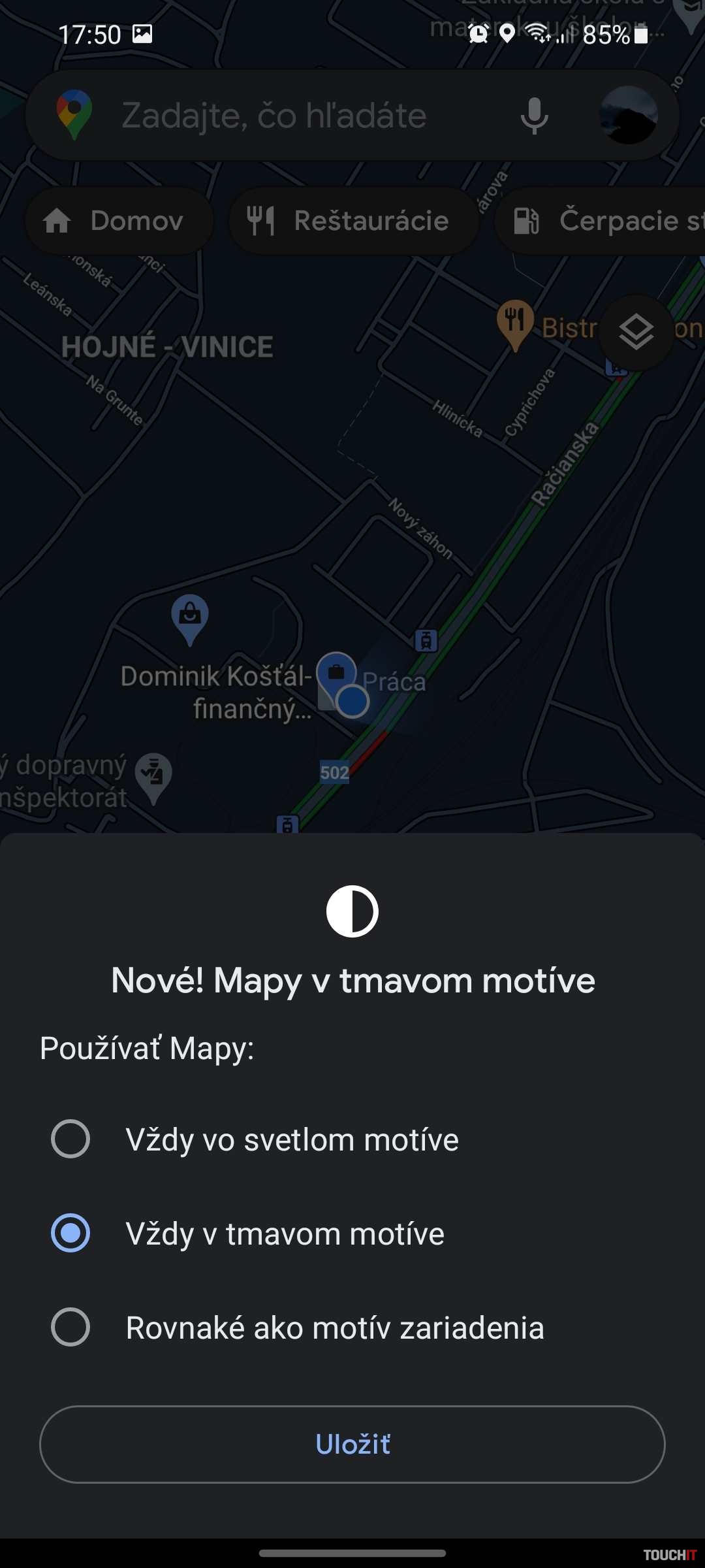 Google Mapy pre Android: Tmavý motív je oficiálne dostupný aj na Slovensku