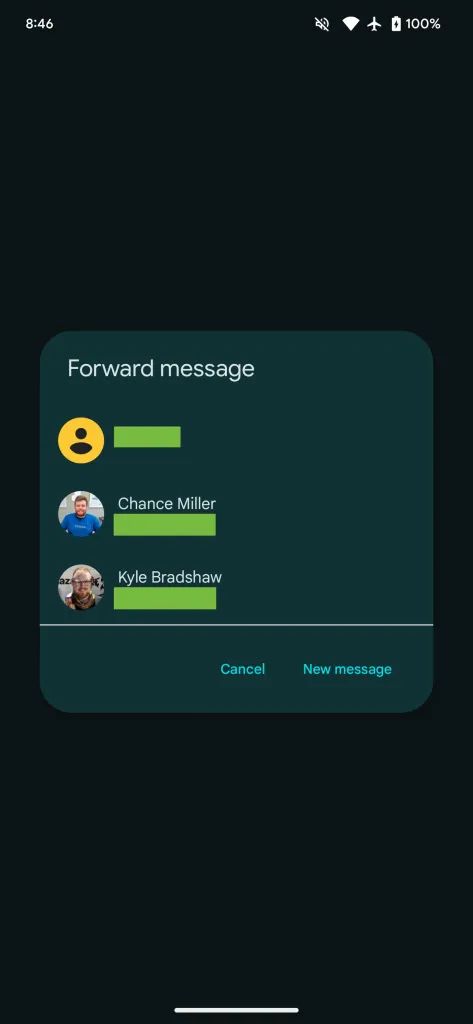 Teraz sa zobrazenie prepne do režimu na výber kontaktov a môžete ich zvoliť viac naraz v jednom kroku. Podľa zverejnených informácií to funguje pri všetkých typoch správ. Ak ale zvolíte kontakty používajúce SMS aj RCS správy, zmení sa preposlaná správa na SMS/MMS.
