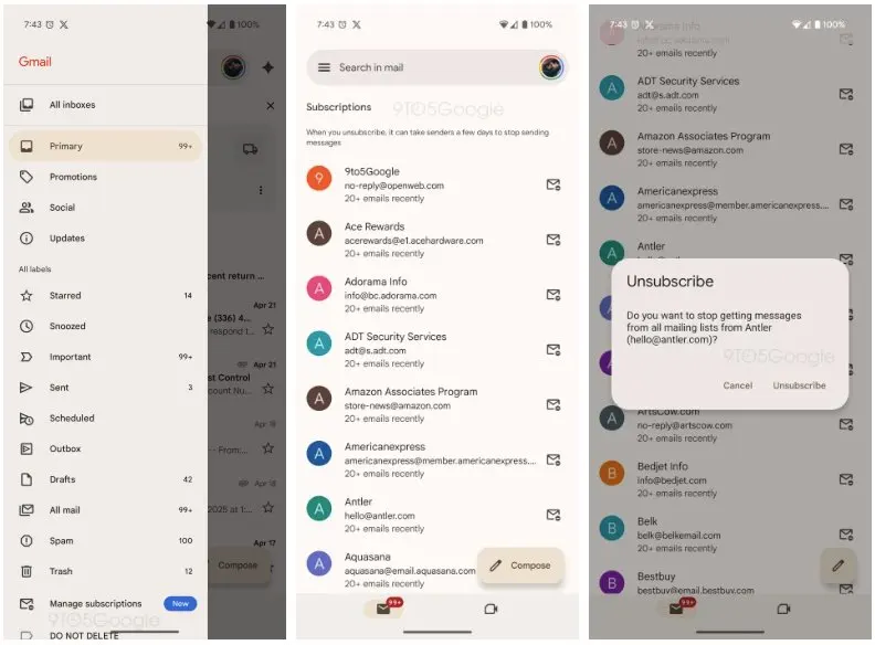 Google pred pár rokmi vyšiel používateľom aplikácie Gmail v ústrety, keď zaviedol možnosť jednoduchého zrušenia odberu marketingových mailov. Pokým v minulosti bolo tlačidlo na zrušenie odberu veľmi ťažké nájsť, niekedy až nemožné, tak Google ho neskôr zaradil priamo do ponuky aplikácie, aby bol k nemu jednoduchší prístup.