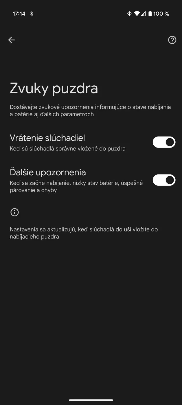 To eliminuje problémy súvisiace s nesprávnym vložením slúchadiel do puzdra. Ak teda slúchadlá vložíte správne, nabíjacie puzdro vydá zvukový signál. Ak ich vložíte nesprávne, puzdro už nezatvoríte, a zároveň nebudete počuť žiadny zvukový signál.