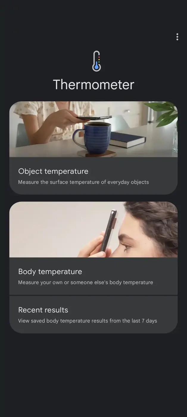 Google v auguste predstavil novú sériu smartfónov, ktoré sú konečne oficiálne dostupné aj na Slovensku. Najvybavenejším modelom je Pixel 9 Pro XL, ktorý má vo svojej výbave teplomer. Ten má však jedno zásadné obmedzenie, na ktoré nás v čase testovania upozorňovala aj samotná aplikácia Pixel Teplomer. Hoci veľa používateľov modelov Pixel 9 Pro, Pixel 9 Pro XL a Pixel 8 Pro by si chcelo merať pomocou smartfónu aj telesnú teplotu, tak aplikácia teplomera aktuálne umožňuje merať iba povrchovú teplotu predmetov.