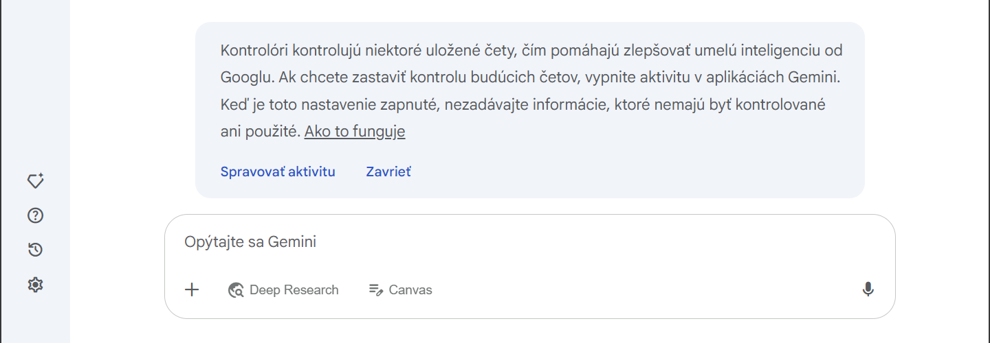 Táto kontrola sa dá vypnúť, avšak stále treba počítať s tým, že používanie umelej inteligencie v cloudovej službe nie je súkromné. V štandardnom nastavení sa vaše čety používajú na zlepšenie umelej inteligencie a táto funkcia je zapnutá. Súvisí to s nastavením, ktoré Google nazýva ako Aktivita. Tu máte zobrazenú históriu v rámci svojho účtu Google, ale tiež dopyty v rámci požiadaviek na nástroj Gemini. Nezávisle od toho, či ho používate z webového rozhrania alebo zo smartfónu.