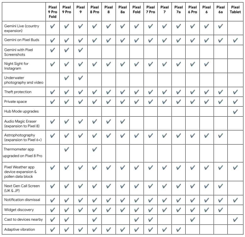 Softvérová aktualizácia Pixel Drop obohacuje aj staršie modely Pixel telefónov, slúchadiel a hodiniek o nové funkcie hlavne z oblasti AI a fotografií. Viac informácií nájdete na stránkach spoločnosti Google TU a TU. Pre lepšiu predstavu o jednotlivých funkciách prikladáme obrázok nižšie.