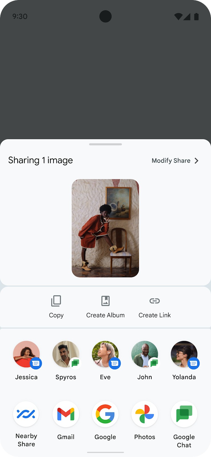 Novinkou je aj lepšie prepojenie aplikácií a systémového zdieľania. Aplikácie budú odteraz schopné pridávať vlastné akcie, ktoré vyvolávajú, a samotný systém používa viac signálov z aplikácií na určenie poradia cieľov priameho zdieľania. Určite ide o užitočnú zmenu, ktorá používateľov odbremení od prechádzania dlhého zoznamu možností zdieľania.