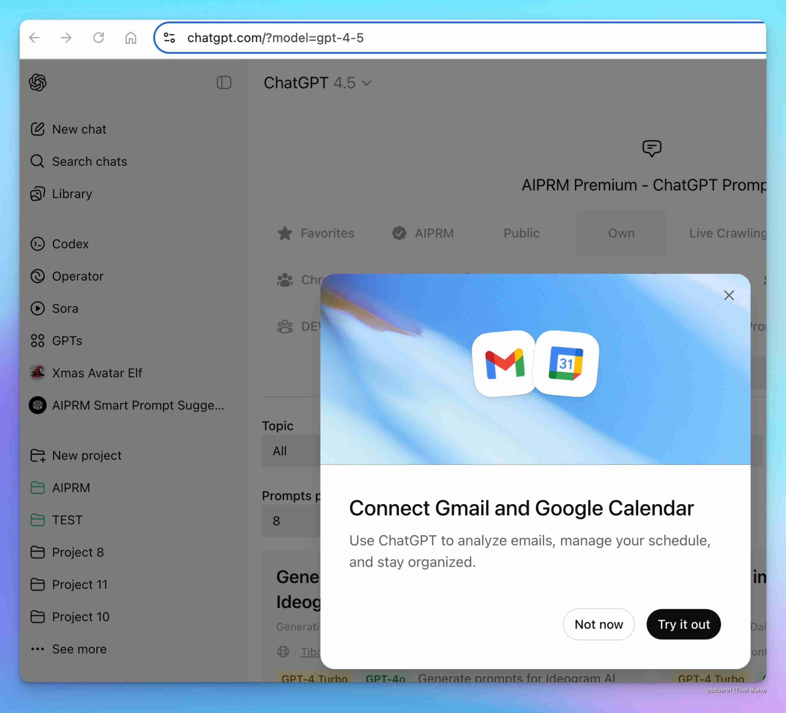 Podľa najnovších zistení sa však teraz pripravuje podpora pre integráciu Gmailu a Google Kalendára. Funkcia je podľa všetkého viazaná na možnosť Deep Research. Podľa príspevku od používateľa Tibor Blaho na sieti X, OpenAI pripravuje integráciu týchto 2 služieb do svojho rozhrania. Zatiaľ ide len o fázu testovania a oficiálny termín ešte nie je potvrdený.