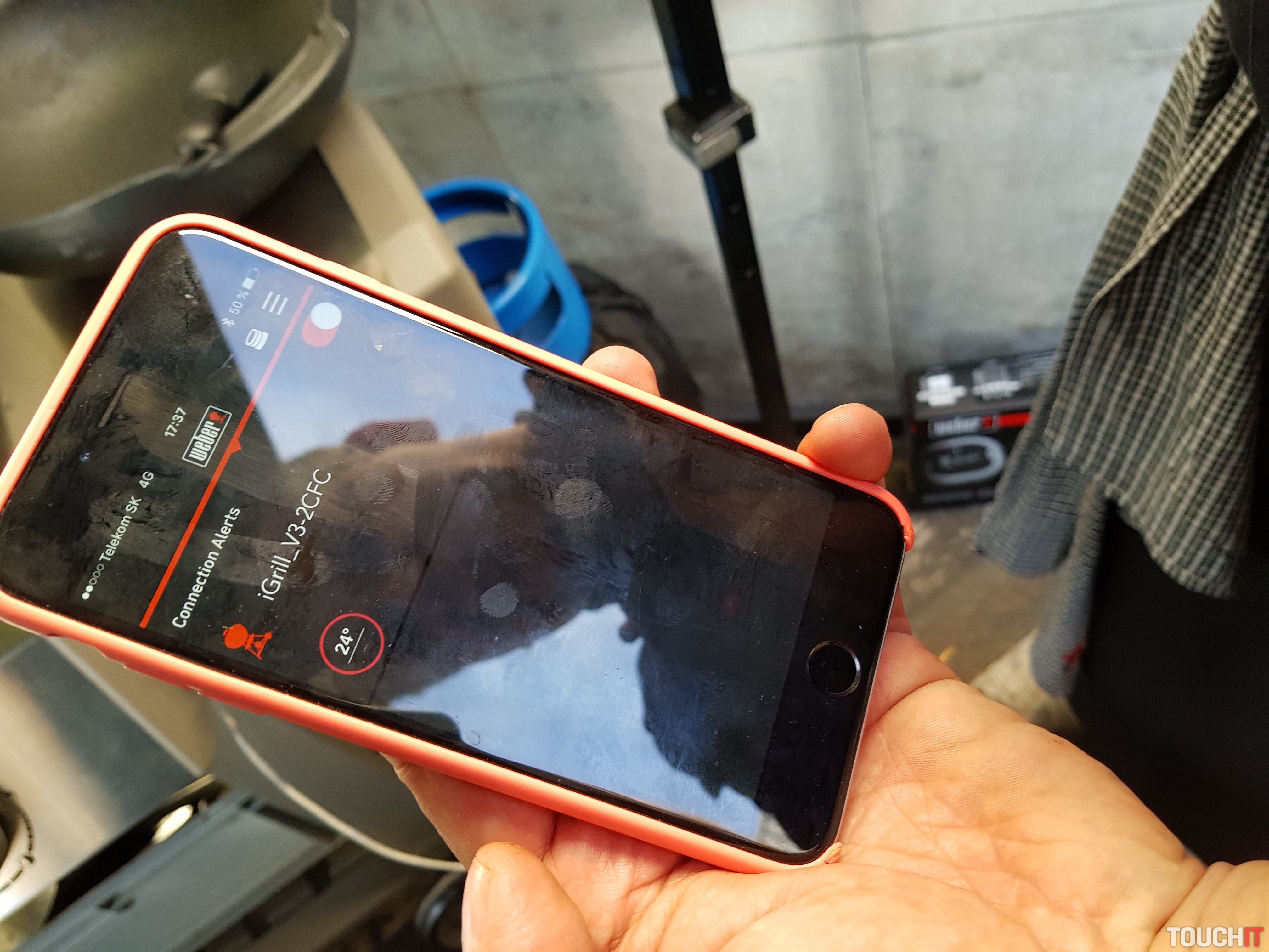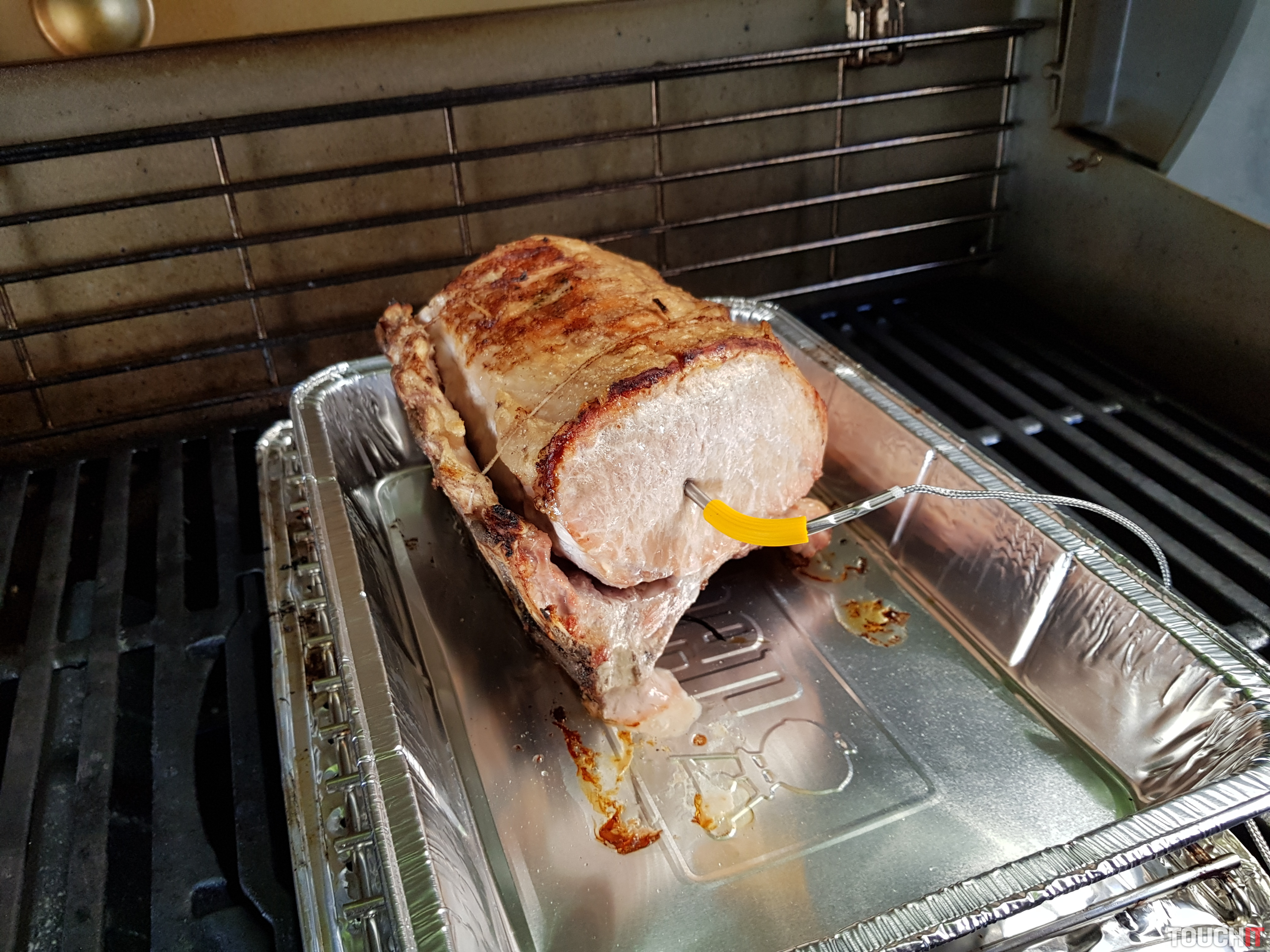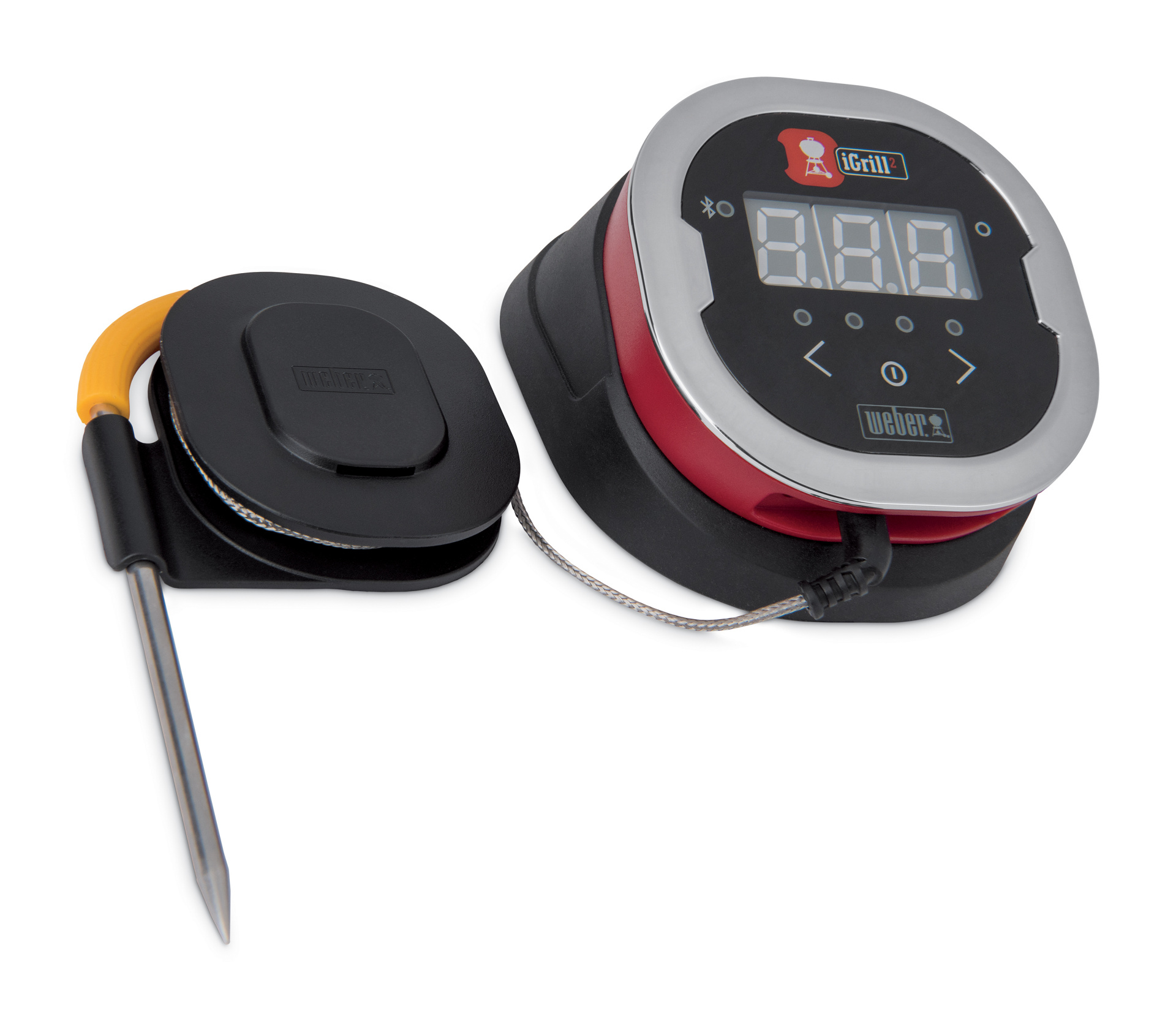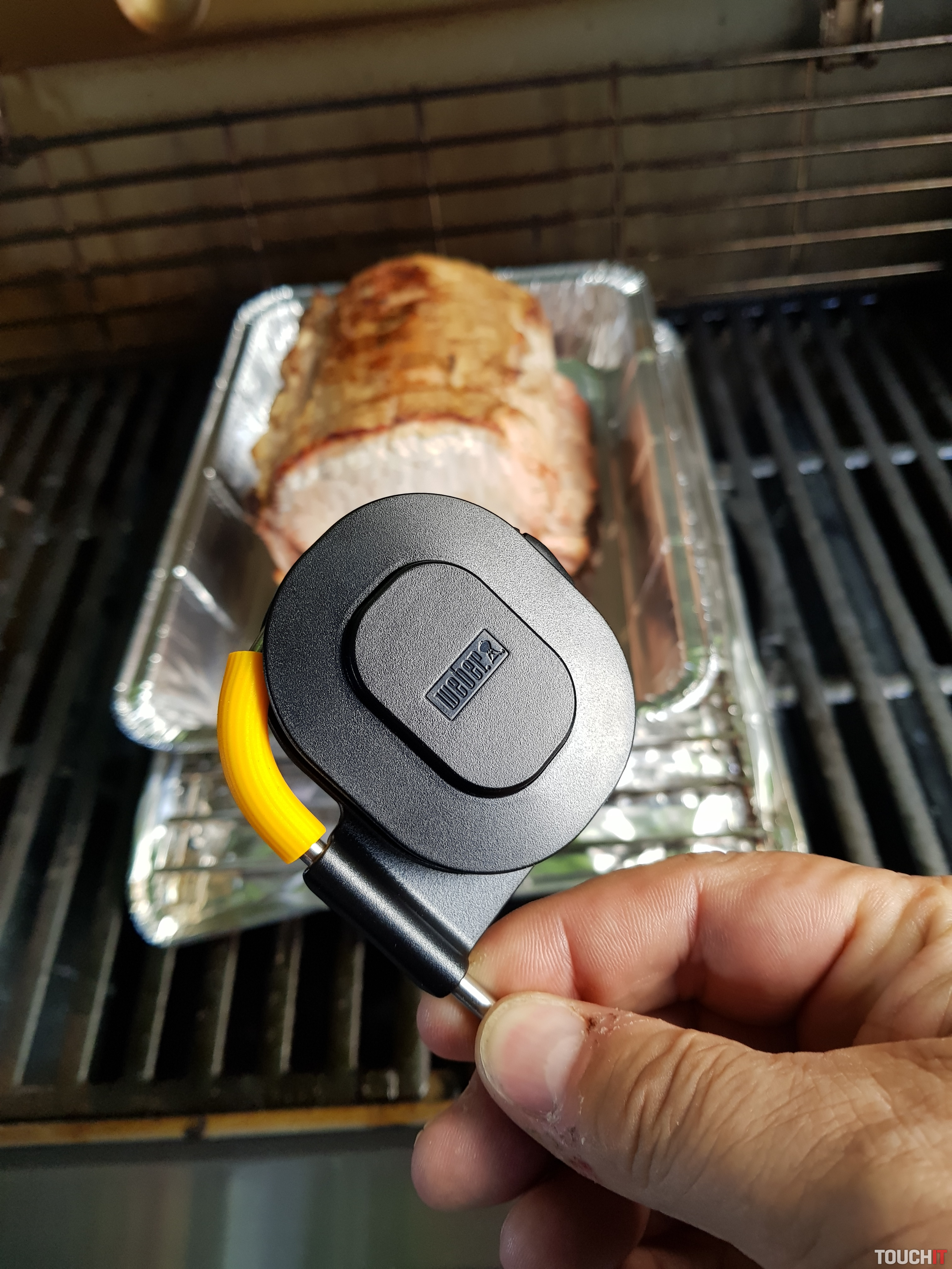 Samotné prepojenie medzi sondou a smartfónom je Bluetooth, dosah je na voľnom priestranstve až do 45 metrov. Pri použití iGrill si môžete nechať zobraziť aj mapu výskytu iných používateľov tejto výbavy. Na test sme mali iGrill 2. čo je univerzálne použiteľné meracie zariadenie s možnosťou pripojenia až 4 sond. Výdrž na batériu je až 250 hodín a súčasťou dodávky je aj kovová položka, ktorú môžete použiť na prichytenie tohto meracieho zariadenia. To má v spodnej časti magnet a na väčšine grilov drží veľmi stabilne. Súčasťou dodávky sú dve sondy, ďalšie dve sa dajú dokúpiť.