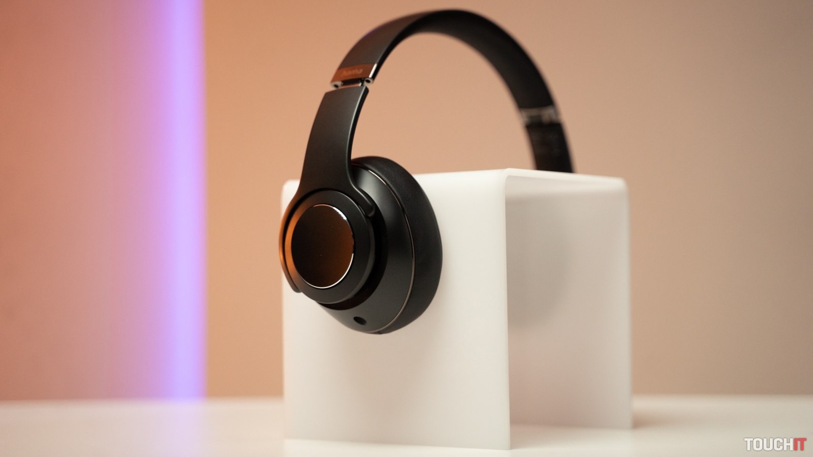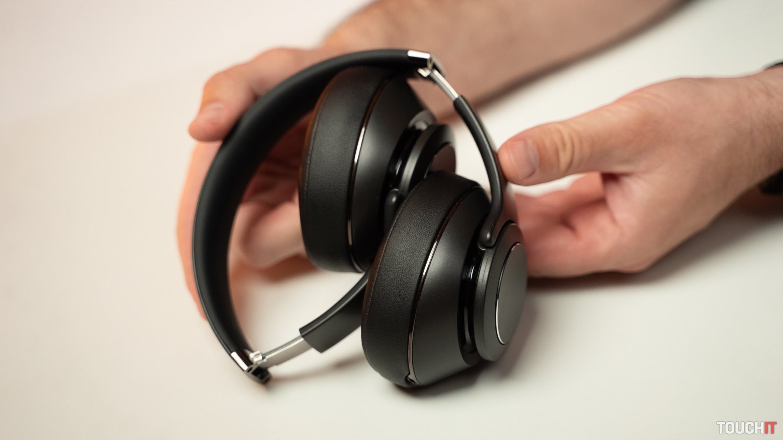 Odlíšenie ľavej a pravej mušle je dobre viditeľné. Značky sú umiestnené na vnútornej strane nastaviteľného hlavového mosta s polstrovaním. Samotné mušle majú mäkké náušníky, ktoré pomerne dobre tlmia okolitý hluk. Ako sme spomínali vyššie, mušle je možné pretočiť smerom von, čím sa slúchadlá zmenia na stereo reproduktor, ktorý je možné využiť na počúvanie hudby alebo aj konferenčné hovory.