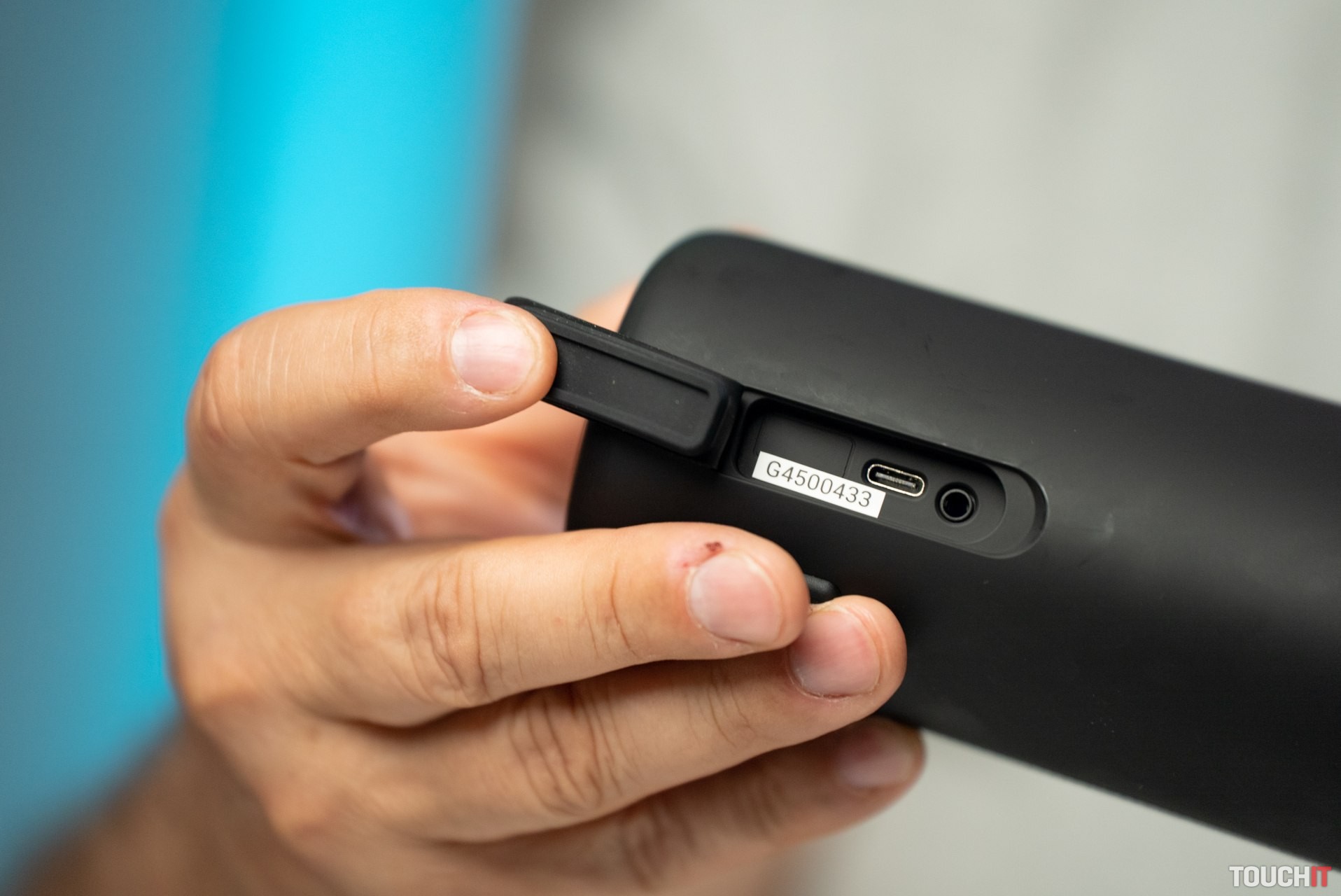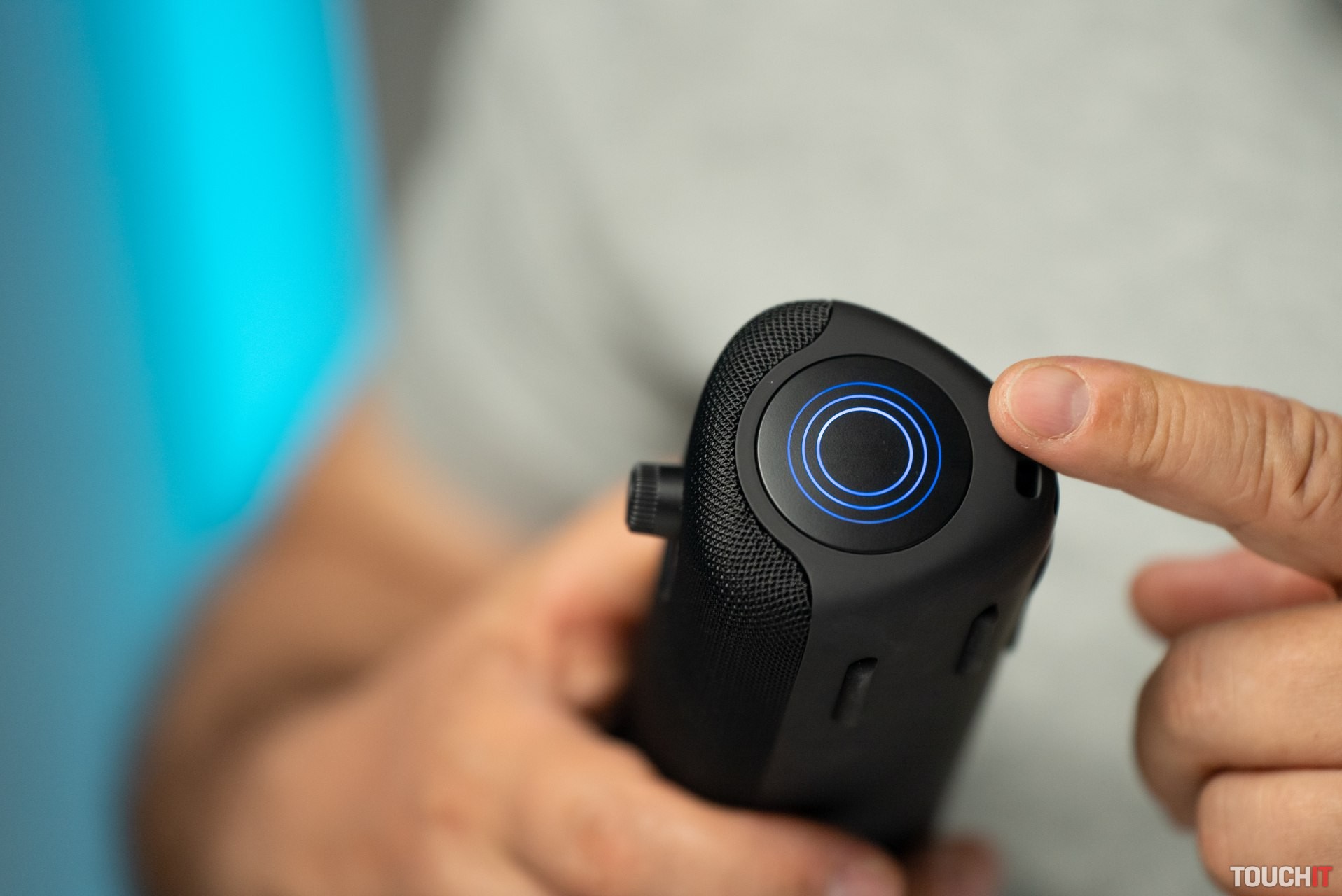 K dispozícii je aj ekvalizér s troma zvukovými efektami, možnosti sú dodatočné basy, zvýraznené výšky a vyvážený zvuk. Na telese valca sa nachádza otočný potenciometer na nastavenie hlasitosti a na jednej strane je ďalšie dotykové ovládanie s LED podsvietením. Pomocou tohto dotykového ovládania môžete preskočiť na nasledujúcu alebo predchádzajúcu skladbu. Nastaviť môžete prehrávanie/pauza a spomenutý ekvalizér.