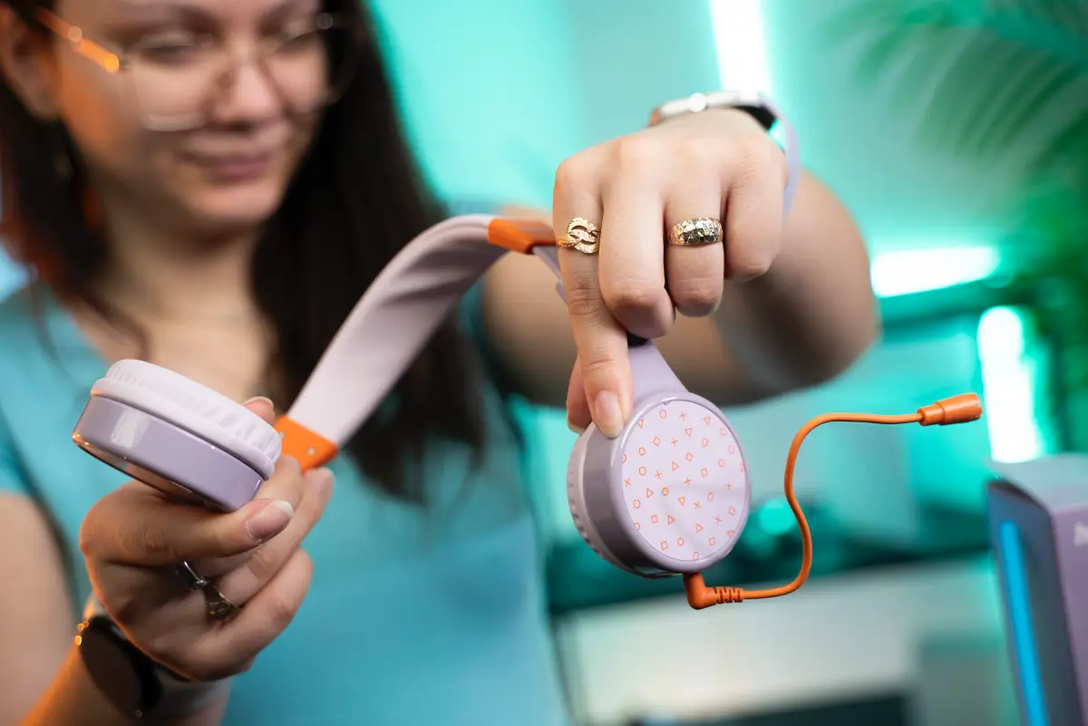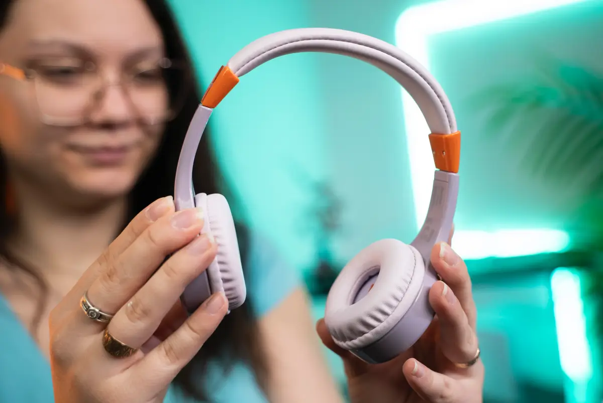 Atraktívny dizajn osloví mladé slečny aj chlapcov, ktorí sa chcú cítiť štýlovo. V ponuke sú tak dve farebné prevedenia slúchadiel. My sme testovali slúchadlá vo fialovom prevedení, ktoré skvele dopĺňajú oranžové detaily. V ponuke je aj modrá farba taktiež doplnená o oranžové detaily.