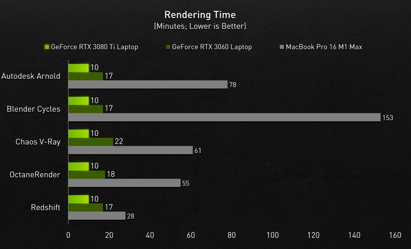 Pokiaľ sa pozrieme na čistý výkon samotných grafických kariet, notebooky s grafickou kartou GeForce RTX 3080 Ti ponúkajú hranie v rozlíšení 1440p pri 120+ FPS s Ultra nastavením kvality. V porovnaní s notebookmi s grafickou kartou GeForce GTX 1080 prinášajú takmer 1,5× nárast výkonu v hrách, ako je Control, Cyberpunk 2077 či Borderlands 3.