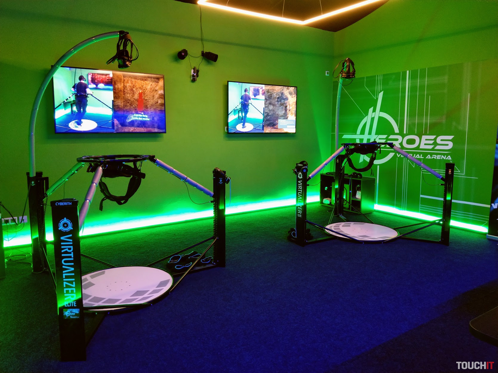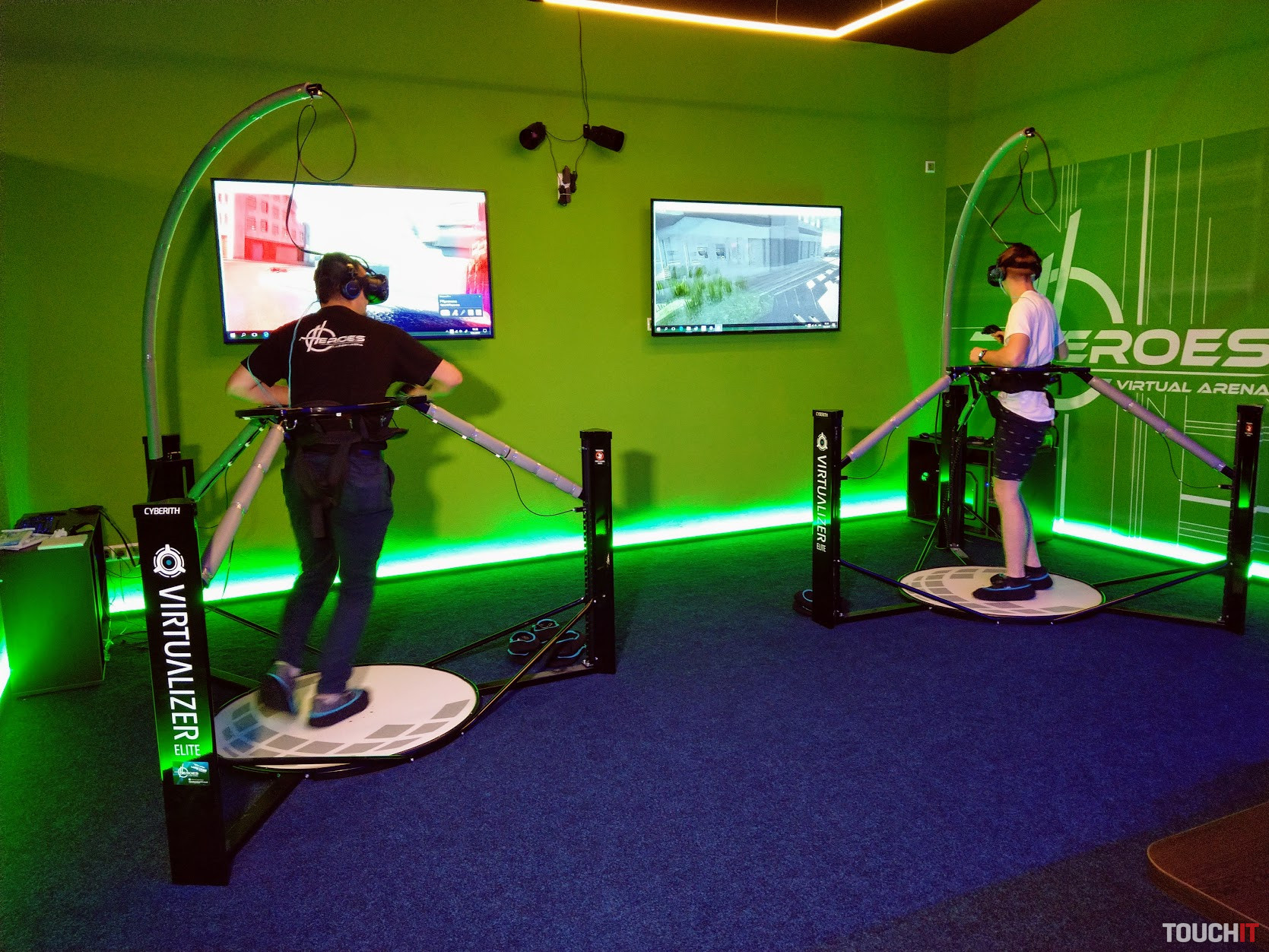 Do Trnavy kvôli virtualizéromDo Trnavy však odporúčame záujemcom o virtuálnu realitu merať cestu najmä kvôli tzv. virtualizérom. Tieto plošiny dokážu snímať a prenášať váš pohyb do virtuálnej reality, takže hru nehráte s gamepadom v ruke, ale reálne chodíte. Heroes Laser Aréna má tieto plošiny dve a podľa slov majiteľa takúto technológiu nenájdete nikde inde v Československu. Ak je tomu inak, dajte nám vedieť. Virtualizéry prinášajú úplne iný zážitok z hrania vo virtuálnej realite. Prvých pár minút sa budete učiť chodiť, pretože zdvíhať nohy na mieste nestačí. Aby plošina zaznamenala váš pohyb, musíte prejsť chodidlom po dvoch senzoroch. V praxi teda stojíte na mieste a pomocou špeciálnych prezuviek sa šmýkate po plošine. Aby ste nespadli, istí vás popruh, tzv. plienka a okolo vás je ešte kovová tyč, ktorá ohraničuje aktívnu plochu. V prípade potreby sa na ňu môžete mierne oprieť, aby ste sa nahli a šmýkanie nohami bolo jednoduchšie. Chodenie vo virtuálnej realite je však o poznanie náročnejšie ako bežná chôdza a je pravdepodobné, že sa počas 15 – 20 minút hrania aj zapotíte. Dôvodom sú taktiež samotné VR okuliare, ktoré máte na hlave. Tituly, ktoré sú aktuálne kompatibilné s virtualizérmi, si pravdepodobne inde nezahráte. Ide totiž o špeciálne hry, ktoré boli vyvinuté iba pre toto príslušenstvo. Ponuka je dostatočne rôznorodá. Môžete si zahrať strieľačku a bojovať proti kamarátovi alebo skúmať kobky a ničiť kostlivcov. Úplnou špecialitou je krátka hororová hra, ktorá nás zaujala svojou atmosférou. Ponuka hier by sa však mala čoskoro rozšíriť aj o komerčne známe tituly. Je potrebné, aby výrobcovia vydali aktualizáciu, ktorá prináša kompatibilitu s virtualizérom.
