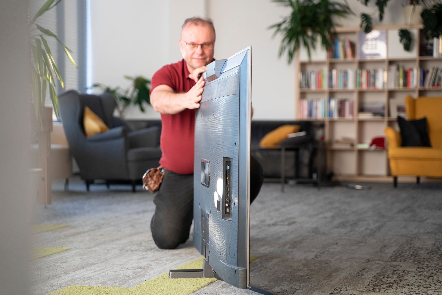 Hardvérová inštalácia televízora je jednoduchá, z hľadiska rozmerov je lepšie to robiť vo dvojici. Softvérová znamená prihlásiť sa k operačnému systému a doinštalovať si niektoré lokálne aplikácie.
