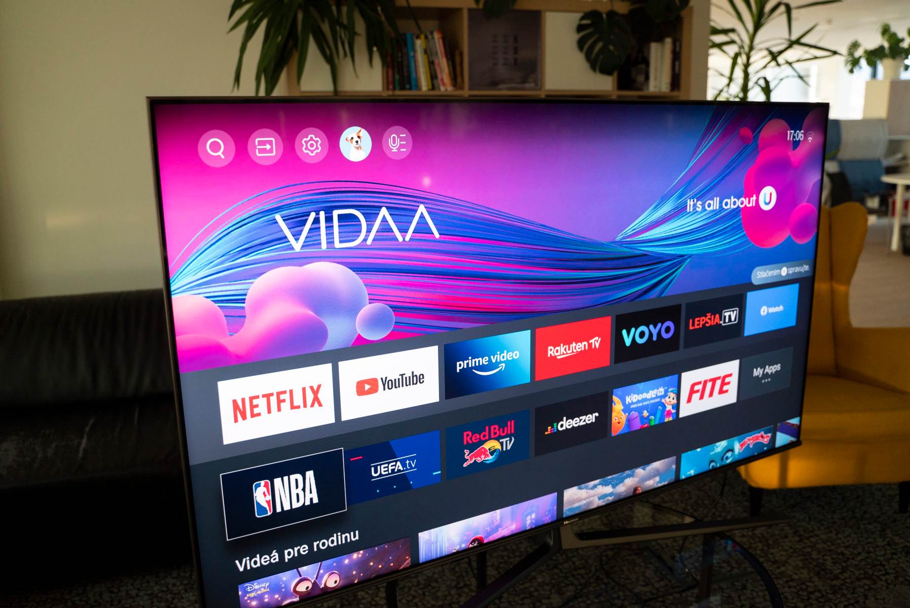 Operačný systém je VIDAA U5.3, potrebujete na jeho použitie používateľské konto, ktoré vytvoríte zadarmo. Páči sa nám, že k dispozícii je viacero aplikácií ako YouTube, Netflix (v plnom rozlíšení), Facebook Watch, firemná UEFA.TV. Z lokálnych aplikácii je to VOYO, TV Seznam, Lepšia.TV, Sledovánie.TV a pod.