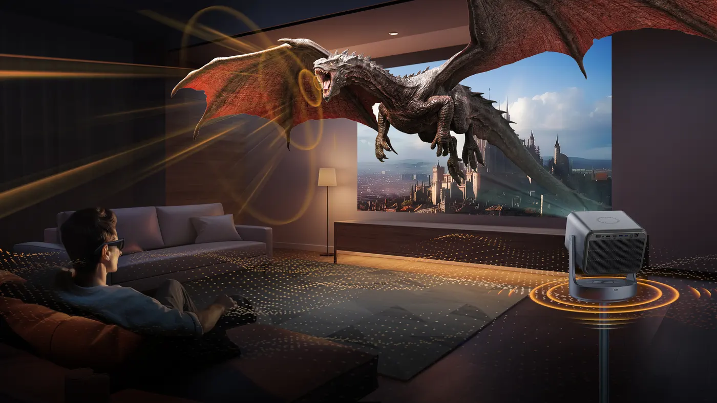 Projektor umožňuje premietanie na plochy o veľkosti od 65 do 300 palcov (od 165 do 762 cm), čo ho robí ideálnym ako pre menšie priestory, tak pre veľké domáce kinosály. Úpravu veľkosti obrazu môžete jednoducho vykonať pomocou optického zoomu. Jeho 360° horizontálna rotácia a 135° vertikálne nastavenie umožňujú projekciu na steny, stropy a iné povrchy, čo ponúka maximálnu flexibilitu pri umiestnení.