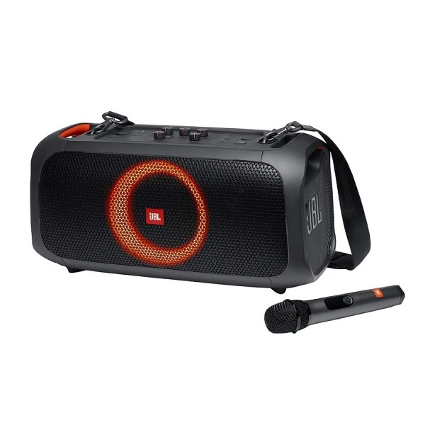 Reproduktor JBL PartyBox On-The-Go vám pomocou 100 W výkonného zvuku JBL Pro Sound synchronizovaného s oslnivou svetelnou show umožní vidieť, počuť a cítiť rytmus. Svoje srdcovky môžete spievať pomocou bezdrôtových mikrofónov JBL alebo použite vstup pre nástroje a zahrajte si spolu s priateľmi. S otváračom na fľaše, čalúneným ramenným popruhom, dobíjateľnou batériou a ochranou proti striekajúcej vode triedy IPX4, má reproduktor JBL PartyBox On-The-Go všetko, čo budete potrebovať na parádny večierok.