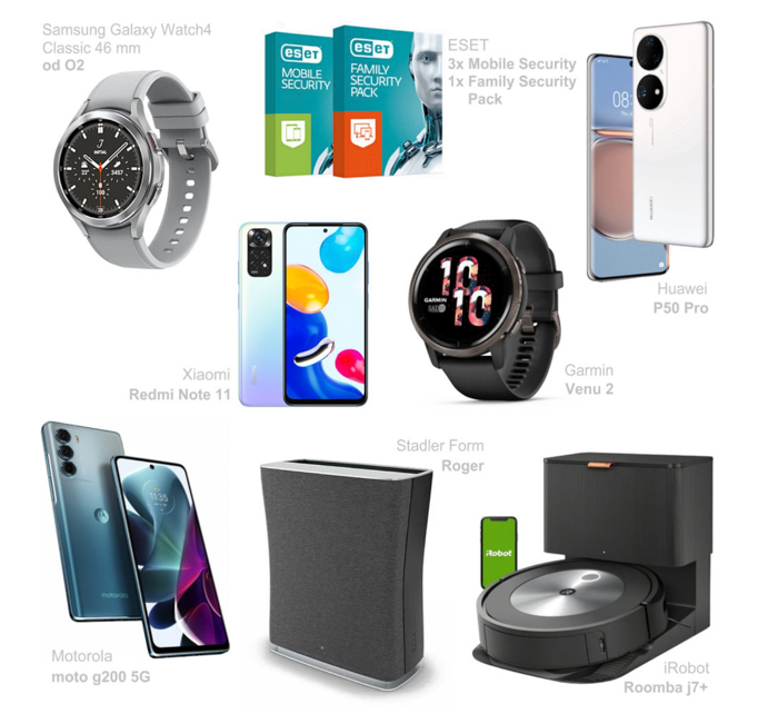Hlasovaním v ankete sa automaticky zaradíte do súťaže o perfektné smart hodinky značky Samsung a Garmin, výborné smartfóny Motorola moto g200 5G, Huawei P50 Pro a Xiaomi Redmi Note 11. Vyhrať však môžete aj čističku vzduchu Roger od Stadler Form, robotický vysávač iRobot Roomba j7+ či ochranu proti vírusom od ESETu.
