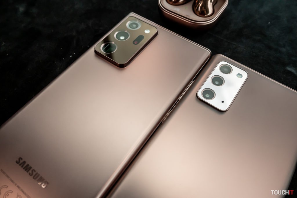 Galaxy Note20 Ultra vľavo, Galaxy Note20 vpravo