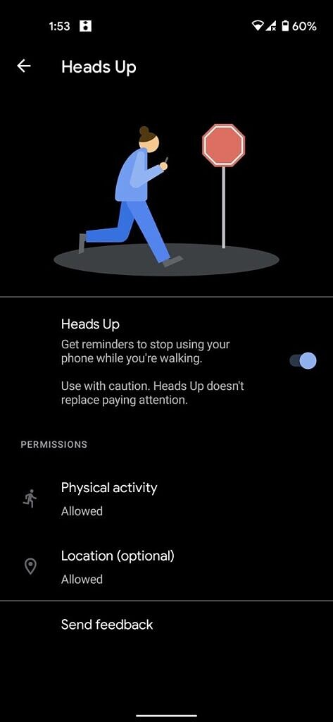 Prvé náznaky o tejto funkcii boli spozorované v kóde aplikácie už koncom roka 2020. Má upozorniť používateľov, aby pri chôdzi držali hlavu hore, čím sa zníži počet nehôd. Táto novinka sa teraz začala dostávať k prvým používateľom smartfónov Google Pixel s najnovšou aktualizáciou funkcie Digitálna rovnováha / Digital Wellbeing. Funkcia sa od jej objavenia príliš nezmenila. Obrazovka nastavenia obsahuje rovnaký popis: „Sledujte svoj krok pomocou aplikácie Heads Up. Ak kráčate a počas toho používate telefón, nezabúdajte sledovať dianie okolo vás. Heads Up pritom nemá nahradiť ostražitosť. Kliknutím na tlačidlo „Ďalej“ v dolnej časti obrazovky sa spustí proces, po ktorom táto funkcia zobrazí pripomienku pri každom použití telefónu počas chôdze. Podľa dostupných správ sa zdá, že nová funkcia Heads Up prichádza iba na smartfóny Google Pixel s najnovšou aktualizáciou aplikácie Digital Wellbeing. V súčasnosti nemáme od spoločnosti Google žiadne informácie týkajúce uvoľnenia aj pre ďalšie telefóny. Očakávame však, že v blízkej budúcnosti sa dostupnosť tejto funkcie výrazne rozšíri. Nie je totiž príjemné, keď počas chôdze narazíte do stĺpu, alebo sa bližšie pozriete na to, ako kvalitne je vykopaná plynová prípojka. Takže hlavy hore.