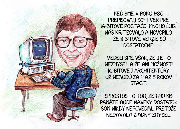 Viete čo je ale na danej vete najzaujímavejšie? Aj keby bola pravdivá a Bill Gates by ju niekedy naozaj povedal, vôbec by vo svojej dobe nebola hlúpa. Vyjadrenie „640 KB pamäte by malo stačiť každému“ totiž o budúcnosti nehovorí nič.