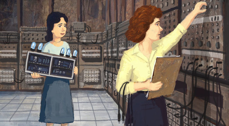 Výmena elektrónok v počítači ENIAC /Ilustrácia: John Hare/