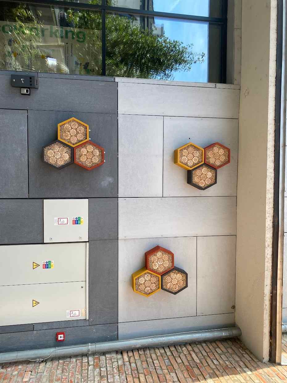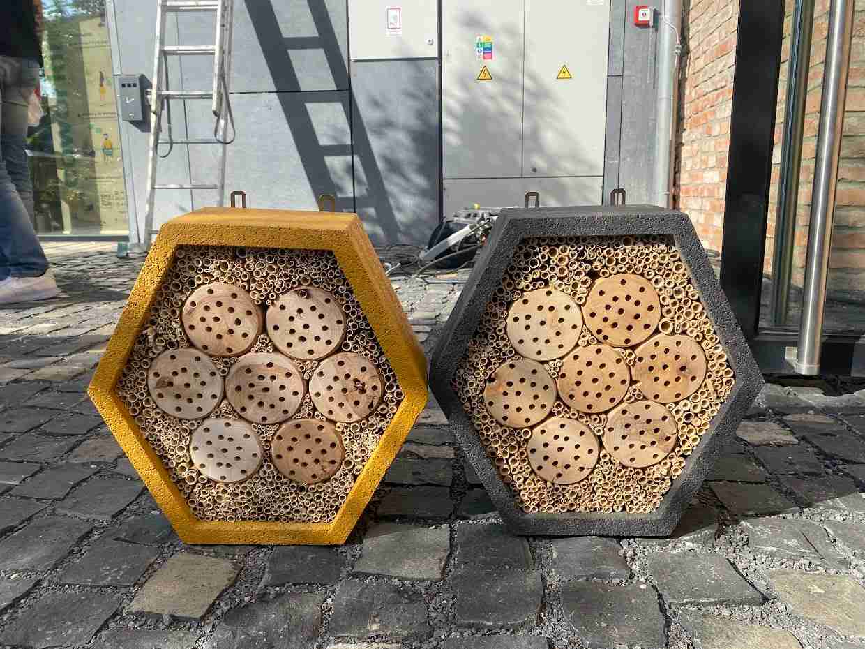 Odporúča sa vybudovať viacero menších hotelov ako jeden megakomplex, pretože každý druh hmyzu má rozdielne a špecifické požiadavky na život a bývanie. Toho sme sa držali aj my v Mobilonline. Na vonkajšiu stenu medzi Coworkingom Priestor a reštauráciou Vegstyle Bistro sme namontovali tri skupinky hmyzích domčekov, pričom každá skupinka pozostáva z troch hmyzích domčekov. Tie sú šesťuholníkového tvaru a pripomínajú včelie bunky v úli. Toto miesto je dostatočne osvetlené slnkom, ale zároveň je chránené pred dažďom a silným vetrom. Hmyzí Grandhotel sa nachádza v dostatočnej výške nad zemou, aby bol chránený pred možnými predátormi.