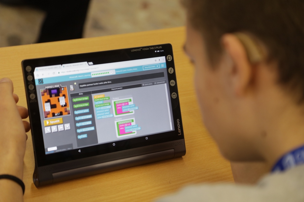 Keďže moderné technológie výrazne uľahčujú život práve ľuďom s hendikepom, Hodinu kódu dostali tento rok šancu zažiť aj deviataci na Základnej škole internátnej pre žiakov so sluchovým postihnutím na Drotárskej ceste v Bratislave.