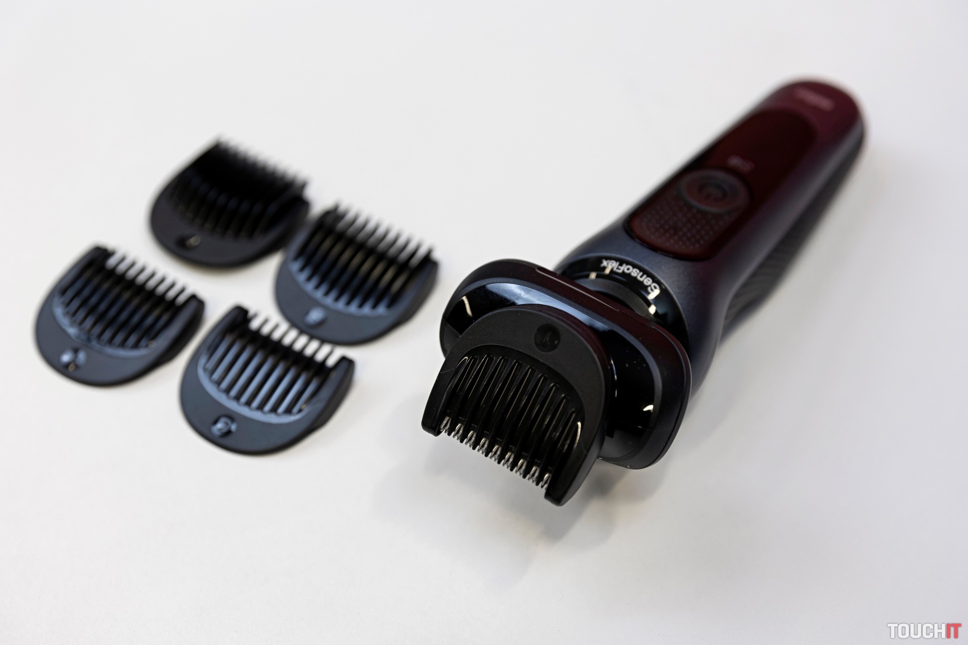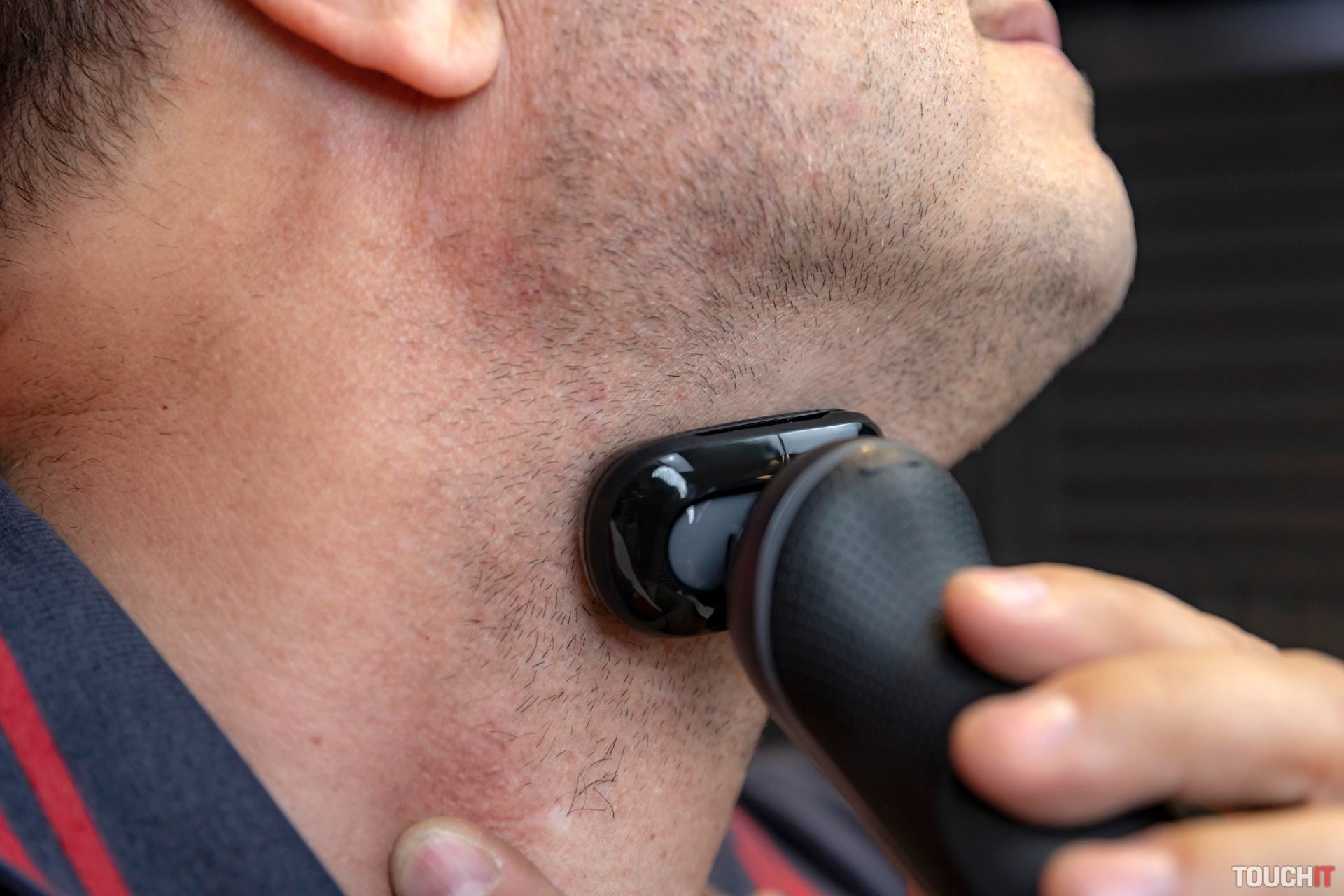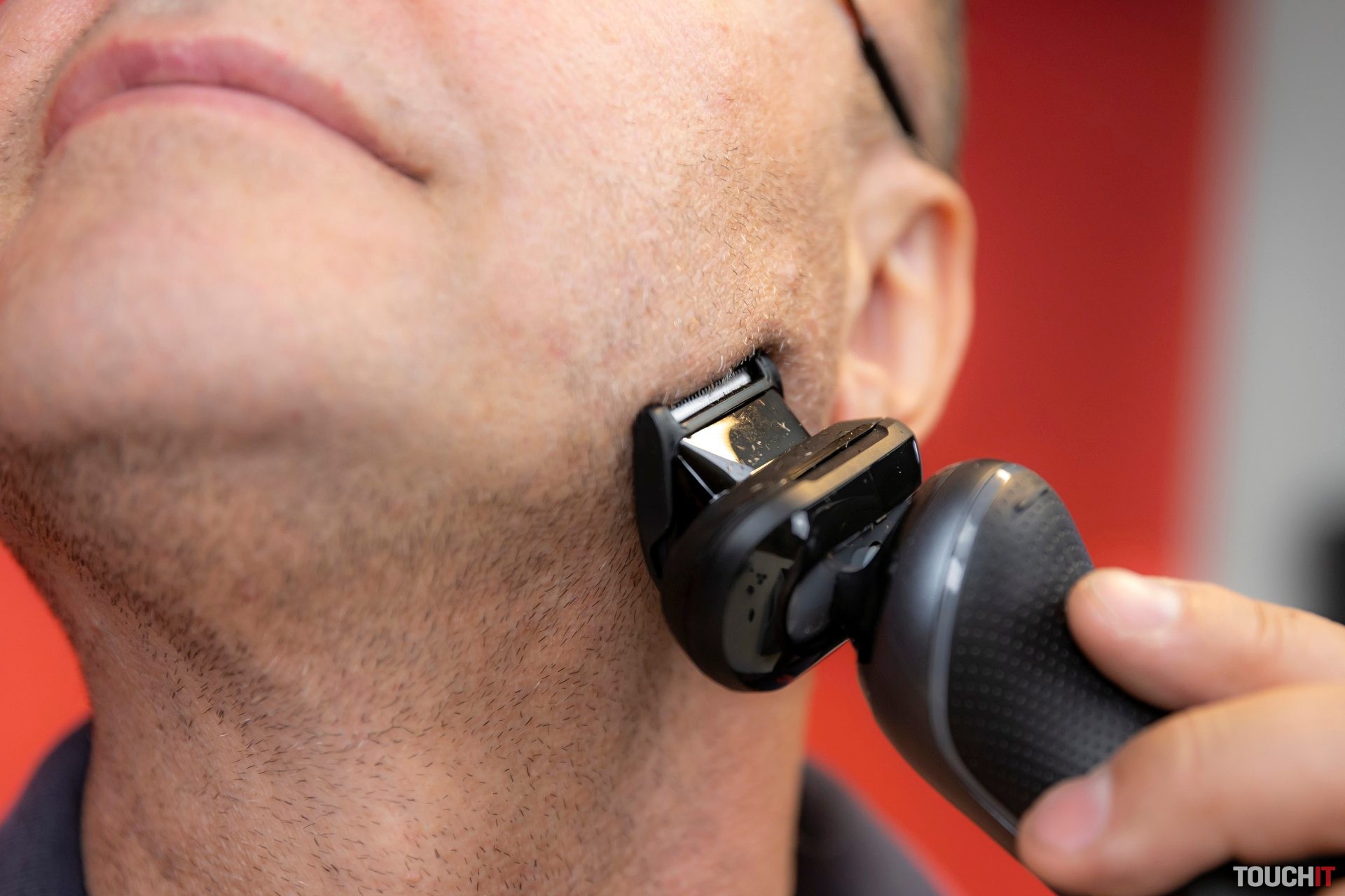 Mali sme ho v najvyššej výbavovej verzii, takto sa pomocou neho dá nielen oholiť, ale aj oholiť na presnú výšku chlpov, ostrihať chlpy na tele a tiež sa dá pomocou dokovacej stanice premazávať a nabíjať.
